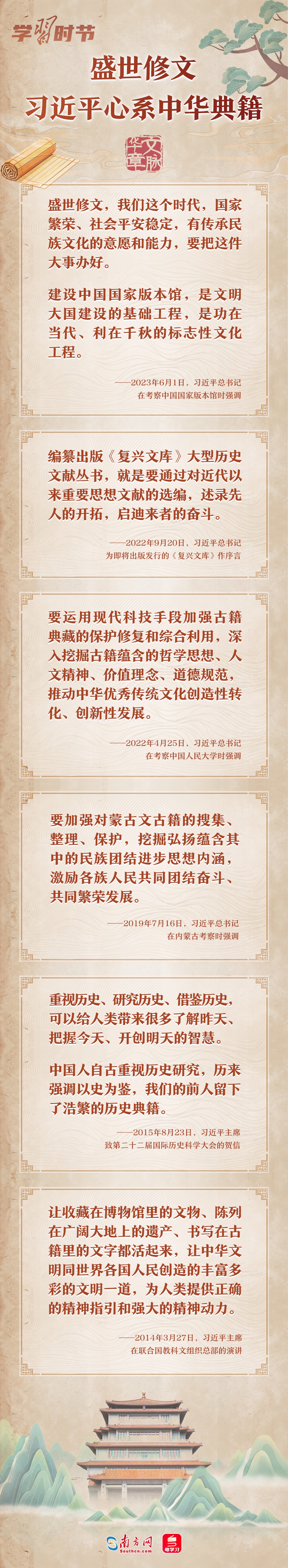 党的十八大以来,习近平总书记曾在多个重要场合指出典籍收藏和研究的重要性。让我们通过一张长图,回顾总书记关于中华典籍的重要论述。