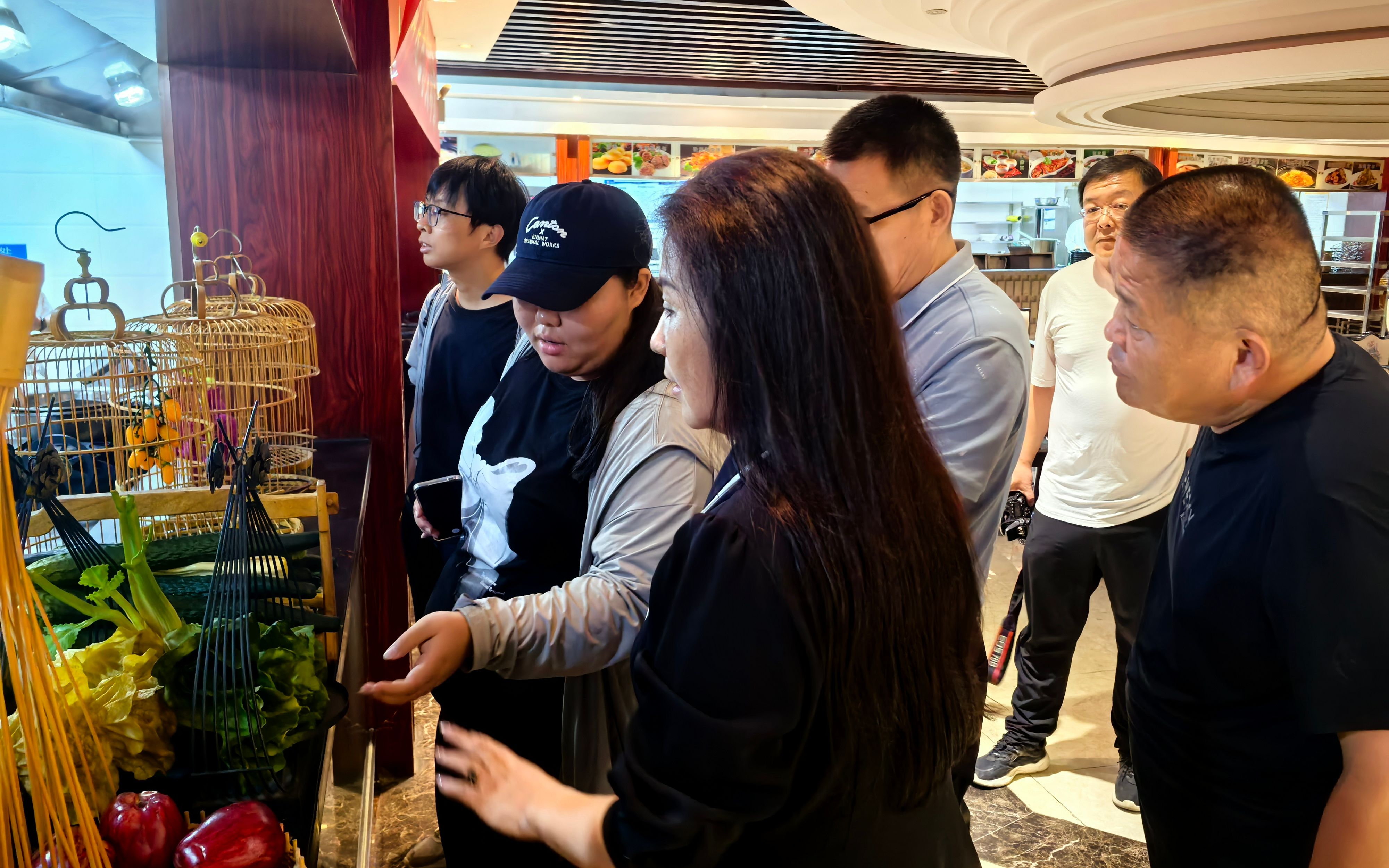 随后,摄制组在石敏董事长的陪同下,先后实地参观了衡水忠义印象、路北忠义人家的酒店大堂、婚宴大厅、明厨亮灶,为后期视频录制选取更能体现衡水特色美食文化的拍摄场地。