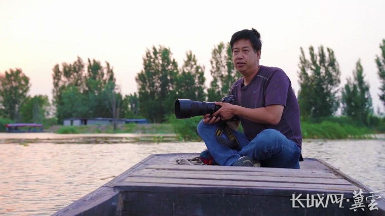 在白洋淀拍摄的张学农。资料图