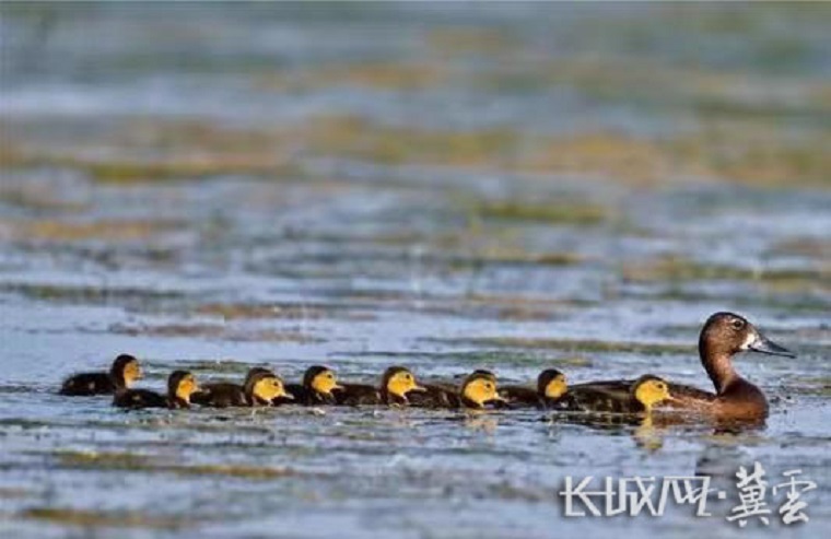 张学农拍摄的“青头潜鸭一家人”照片。资料图