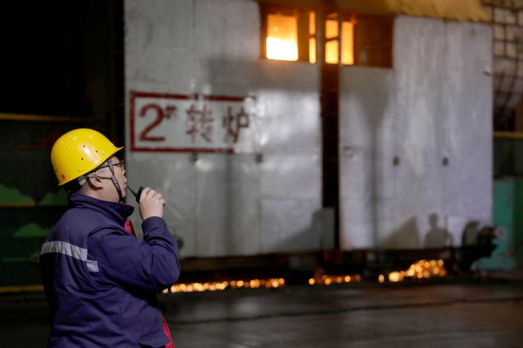 河北省邢台市的德龙钢铁有限公司工人在车间工作。图片来源:新华社