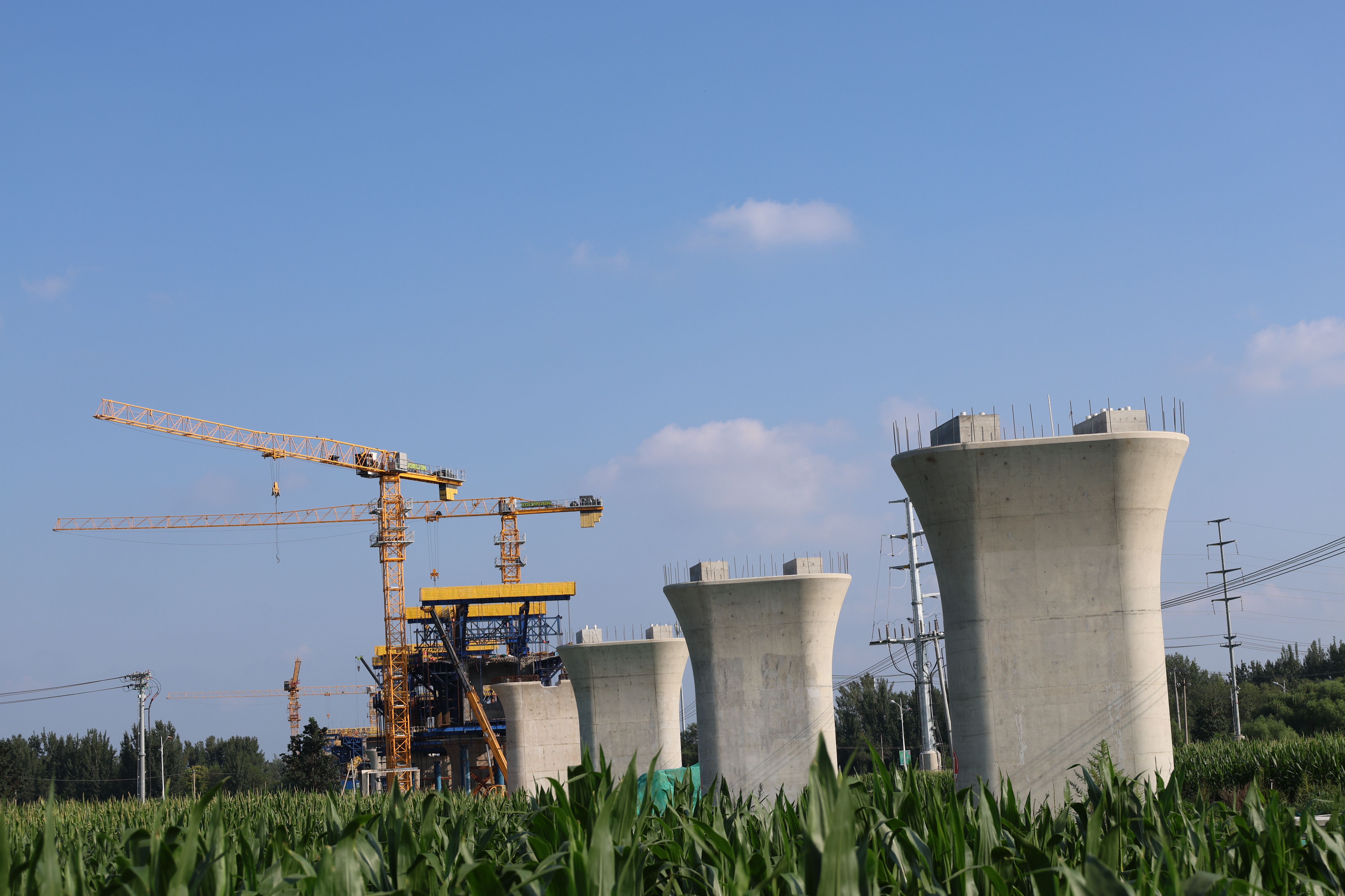 雄商高铁衡水枢纽站前二标位于河北省衡水市境内,起讫里程 DK272+404~DK289+007,长度16.603公里,线路跨越衡水境内滏阳新河河堤路、红旗大街(S040省道)、老106国道、纵一路等,施工影响因素多,协调组织难度大,如何在施工中确保架梁和下方行车及人员、机械的安全成为最大难题。面对施工环境困难以及工期压力,雄商高铁项目部成立工作专班,针对影响开工的各类困难逐一摸底,夜以继日研究推进,将问题逐一解决,得到了参建各方的大力称赞。