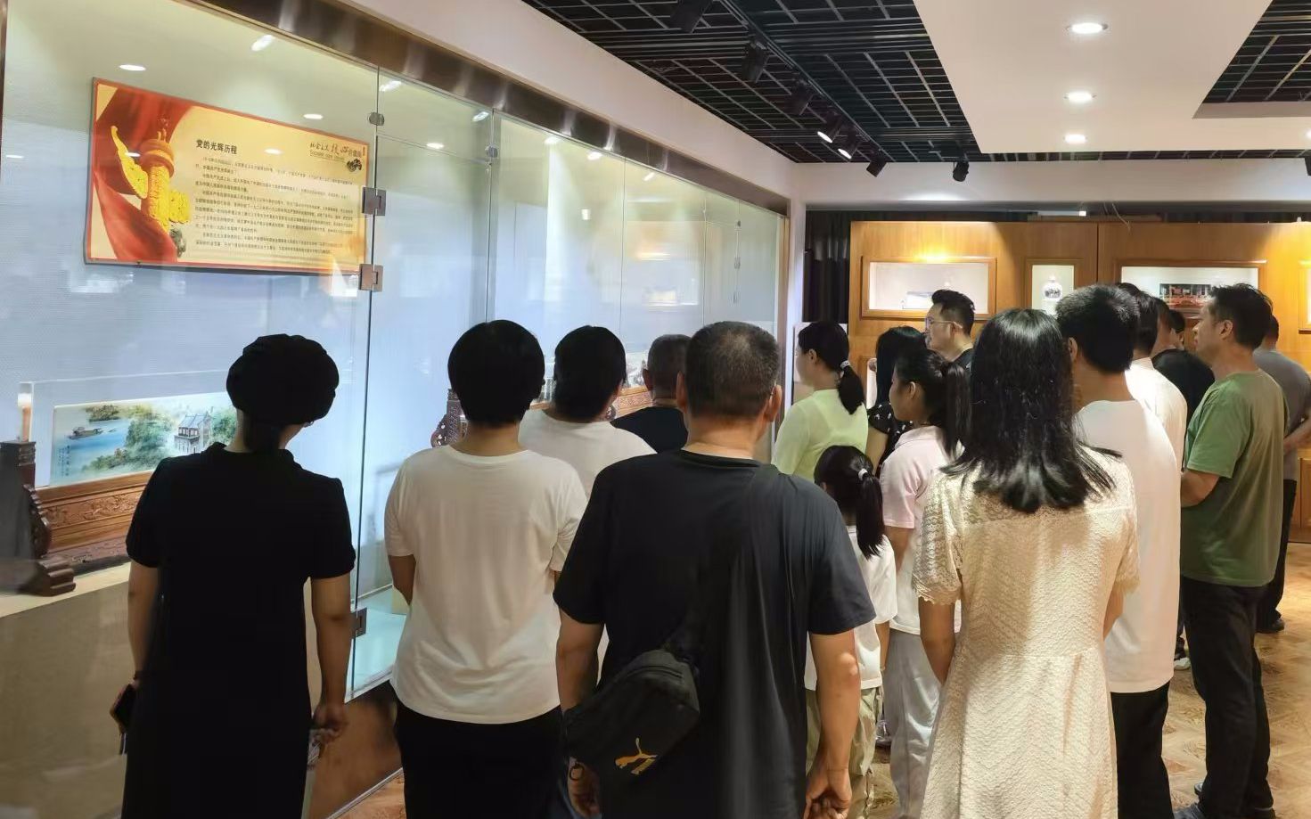 “1915年‘五·四’运动后,马克思主义在中国得到传播。1921年,中国共产党第一次全国代表大会在上海和嘉兴南湖上举行,中国共产党光荣诞生……”在解说员的讲解中,从党的光辉历程版块到新中国重大历史事件版块,再到壮美河山、中国传统价值观、中国文明网版块,他们欣赏了近百件内画作品。这些作品以水晶球、内画屏风、笔筒、花瓶、鼻烟壶、摆件等为载体,不仅画出了党的历史、繁荣富强的祖国,还从国家、社会、公民三个层面诠释了社会主义核心价值观的深刻内涵,让他们对社会主义核心价值观有了更直观的认知和更深层的理解。
