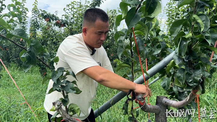 海兴农场碱梨基地技术员窦国望正在对园区内的梨树进行管理。长城网·冀云客户端记者 赵博轩 摄