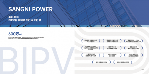 据悉,桑尼能源是国家首批18家分布式光伏发电示范区企业,中国分布式光伏最佳BIPV技术金奖等荣誉获得者,参与了多项国家标准与行业规范。2023年其主导编写的国家建筑标准设计图集《建筑光伏组件工程应用构造》正式公开发布,同年获得“全球首张BIPV 2PfG TÜV证书”.桑尼能源正在用自己的行为践行“以创新引领可持续未来”的理念。