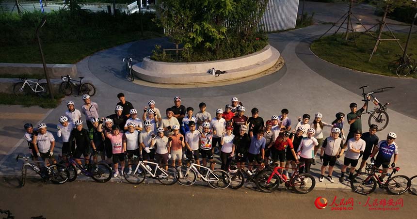 航拍夜骑运动。 黎馨文摄