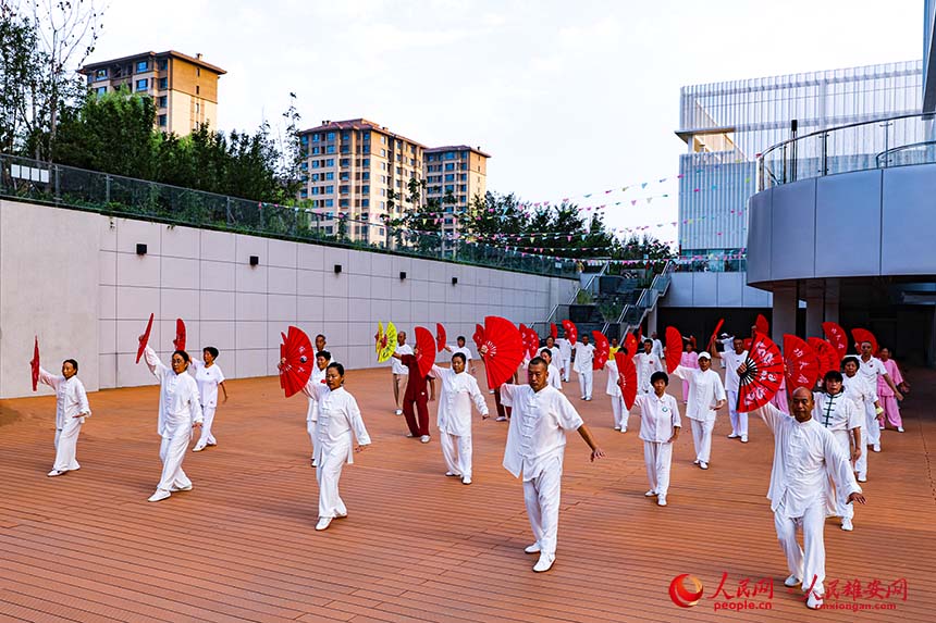 容东居民晨练太极扇。人民网 苏春丹摄