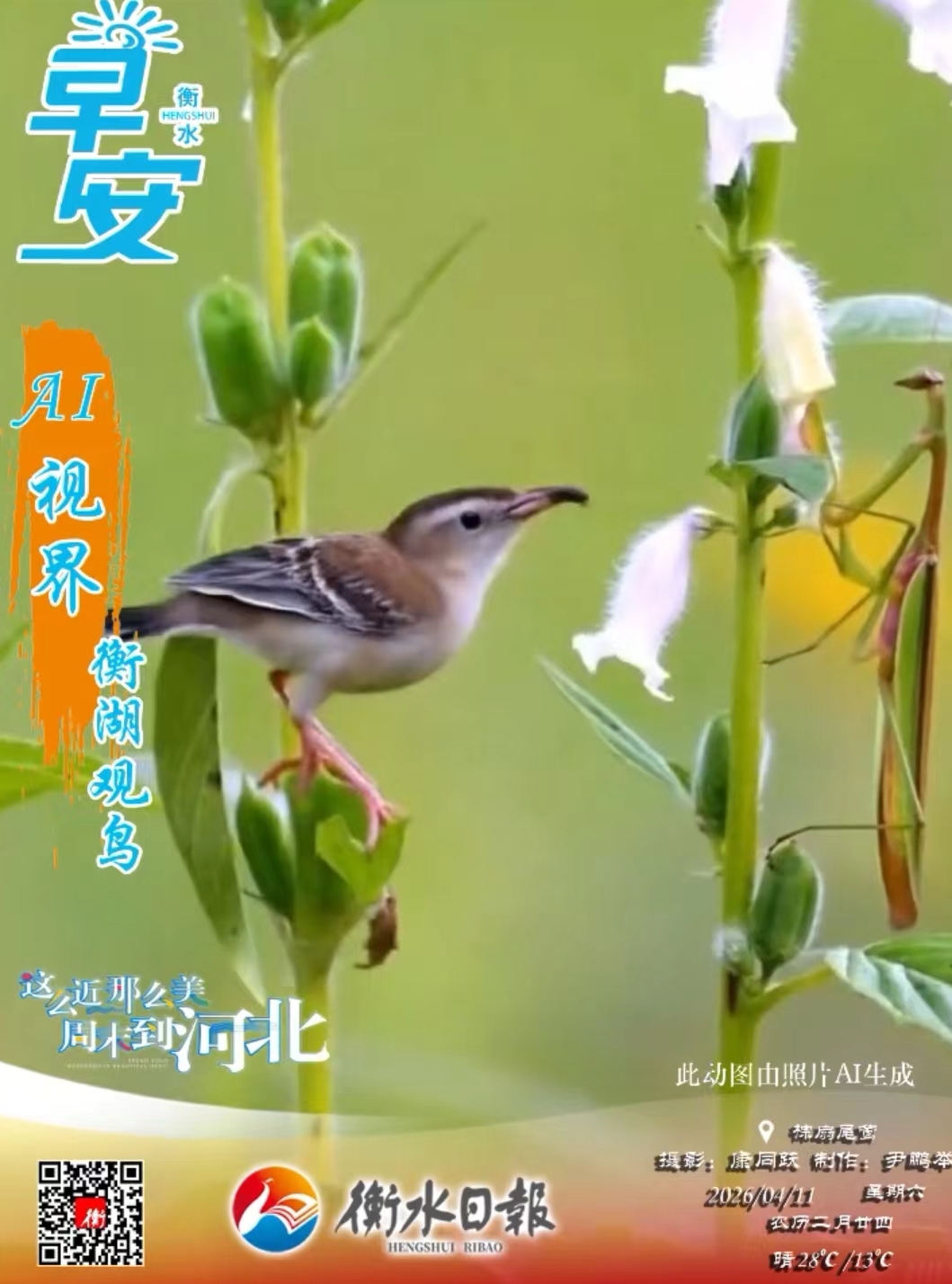 点赞 +1 微博 微信 我要评论 发布 相关推荐 海报系列||早安衡水 瞬间 4小时前 雄安新区加快打造新时代的创新高地和创业热土丨创新应用场景高效赋能未来之城 关注 17小时前 【牢记嘱托 感恩奋进 深入推进雄安新区高质量建设和发展】河北推动“极数”数据大模型在八大场景创新应用 关注 17小时前 百姓看联播 | 疏解到雄安,过得怎么样? 关注 17小时前 夜校的灯,暖了雄安的夜 关注 17小时前 对话 在雄安丨从跟跑到领跑 数智创新的“稳准”答案 关注 17小时前 冀时评丨让内陆变“沿海” 雄安国际港激活开放新动能 关注 17小时前 热门 一天 三天 一周 1 花海里“舞”出振兴梦 ——探访武强县五位村支书“组团跳舞”背后的深意 2 衡水市开展“美丽衡水我推荐”创作者交流会暨“网络名人看衡水”网络主题活动 3 人气爆棚! 衡水野生动物园迎来春游热潮 4 衡水市严打涉税违法行为维护税收公平 2025年依法查处虚开骗税案件126件 5 深州市建强质检平台筑牢果蔬安全防线 6 “小橘灯”助残接力行动在市体育休闲广场举行 7 乐韵寻踪 艺海拾贝 安平县第四小学开启武强世界乐器博物馆研学之旅 8 衡水市路灯管理中心开展线缆接头专项排查整治行动 9 独家视频丨习近平会见郑丽文:两岸同胞同属中华民族 铸就共同信念 10 衡水市优化税务执法方式打造法治化营商环境 1 桃城区中湖大道(北堤至南堤段)路面提升工程4月10日起断交施工 月底通车 2 衡水桃城区:擦亮“河北福嫂”金招牌 架起就业暖心桥 3 衡水推出10条休闲农业与乡村旅游精品线路 4 河北衡水:宝云公园繁花盛放 踏青赏花游人如织 5 【新闻发布】 解读政策 助力发展 衡水市税务系统开展税收普法宣传系列活动 6 衡水市2026年中考开始报名 7 阜城县市场监管局:“三位一体”服务模式为企业发展赋能 8 古柏焕新颜 广场聚民心 枣强县侯冢村绘就幸福生活新图景 9 衡水市人社局开展新就业形态劳动者职业伤害保障宣传活动 10 春日盛景 清明假期衡水市区宝云公园游人如织 1 中共衡水日报社党委关于五届市委第十一轮巡察整改进展情况的通报 2 【网络中国节·清明】85载回响 太行仍念放牛郎 3 河北故城:举办“鸢飞故城 筝舞运河”全民放飞风筝 主题文化活动 4 边角地“绣”出幸福园 小空间激活大民生 ——饶阳县城市更新的生动实践 5 缅怀革命先烈 传承红色精神——安平县第四小学举行清明节系列主题活动 6 “灵魂摆渡人”:跨越1700多公里 送河北去台老兵魂归故里 7 优良家风共传承 移风易俗润清明 衡水市景县苏老家村举办第二届家风季活动 8 鲜花代纸钱、风筝寄追思—— 枣强县开展“文明祭祀·绿色清明”主题活动 9 【专题海报】清明祭英烈 10 【网络中国节·清明】追寻·2026·清明祭英烈 广告 广告 广告 24小时 1 习近平总书记关切事|工程一线淬初心 2 习近平主席贺信激励中美各界人士拉紧友谊纽带 3 海报系列||早安衡水 4 2026年度“最美河北人”揭晓 衡水市张俊荣等3人上榜 5 冀T老吴三轮车进藏之旅: 以车轮赴河山,携乡情走天涯 6 全国首例!衡水特色产业集群数据资产质押融资落地 7 习近平向中美“乒乓外交”55周年纪念大会暨中美青少年体育交流系列活动启动仪式致贺信 8 独家视频丨习近平会见郑丽文:两岸同胞同属中华民族 铸就共同信念 9 “小橘灯”助残接力行动在市体育休闲广场举行 10 衡水市路灯管理中心开展线缆接头专项排查整治行动