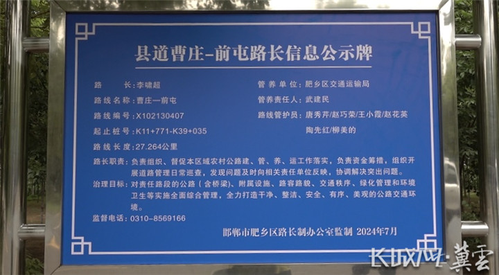 邯郸市肥乡区曹前线路长信息公示牌。长城网·冀云客户端记者 王棋 摄