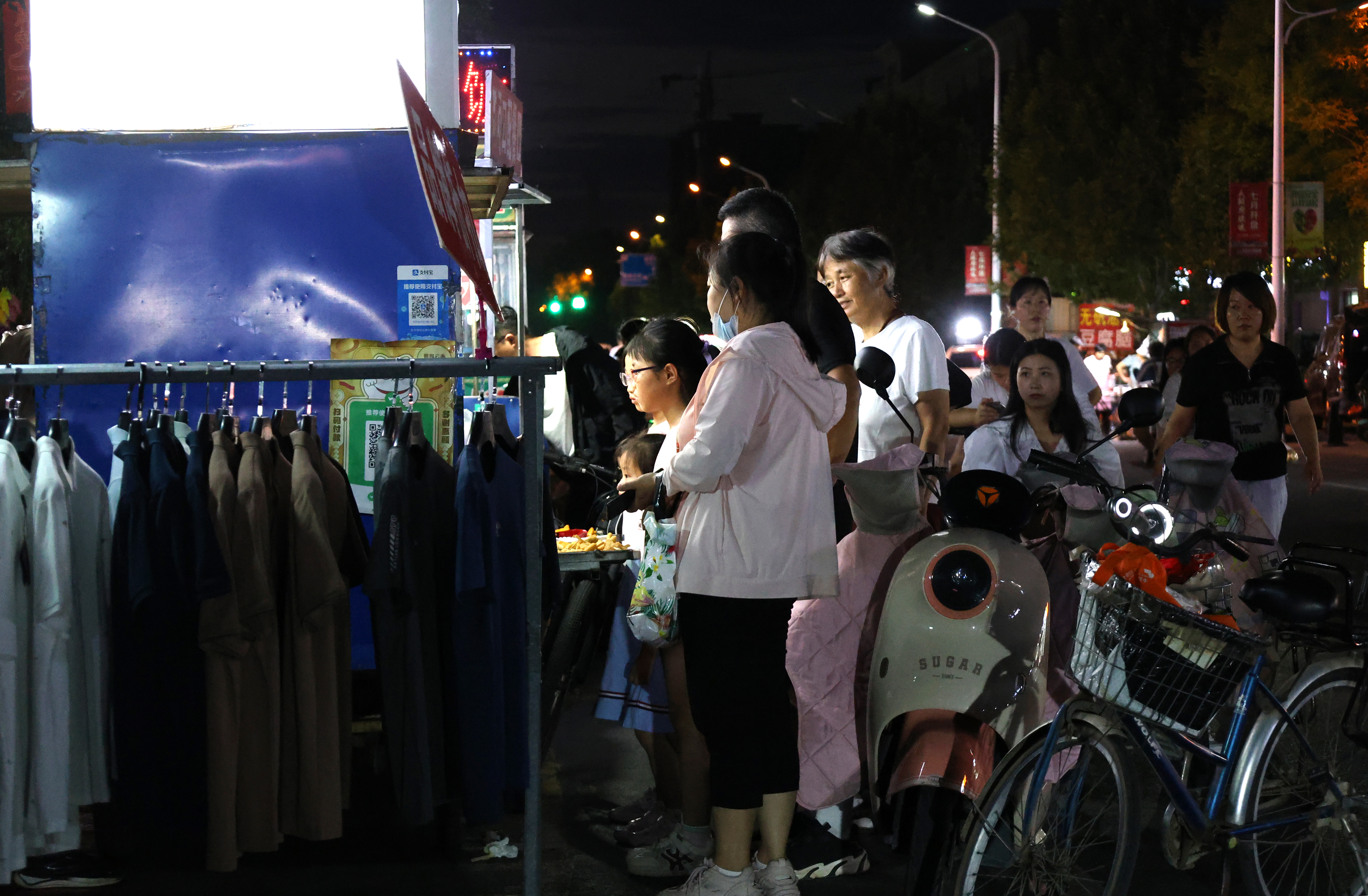 各个摊位整齐有序地排列着,衣服、鞋子、蔬菜、水果一应俱全。一家炸货店前,摊主忙得不可开交,“这个牙签肉给我来1斤,鸡柳、鱼豆腐都各来5串。”在这里,每日前来光顾的大多是附近居民,住在恒丰•理想城小区的李先生和妻子下班后经常来此散步,购置生活用品。李先生满脸幸福地感慨:“出门就是夜市,生活极为便利,生活在衡水真是美好。”