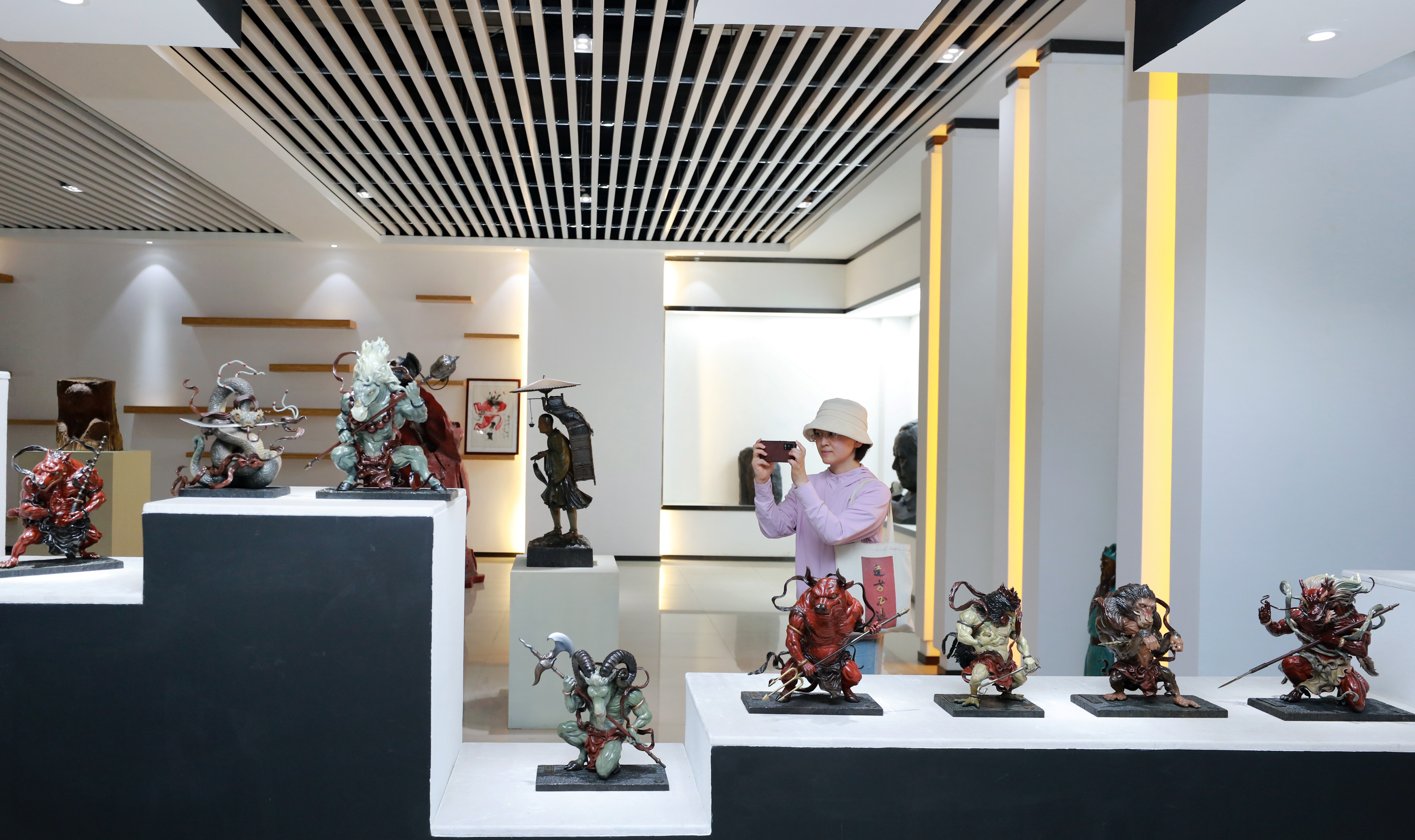 “青铜之器,历数千年之岁月而步入公共空间,成为人类文明之新表征……”记者跟随公司企划主管沈华的脚步,漫步华日美术馆,聆听一件件美轮美奂青铜艺术品背后的故事,详细探秘企业不断壮大、跨越发展之路,让人情不自禁地惊讶和赞叹这耀眼夺目的青铜之光。“这些作品生动展示了辉煌灿烂的青铜文明,真是让人大开眼界!”“无论是人物雕塑,还是景观雕塑,设计都很独特,非常有艺术感。”参观者边参观展馆边发出连连赞叹。