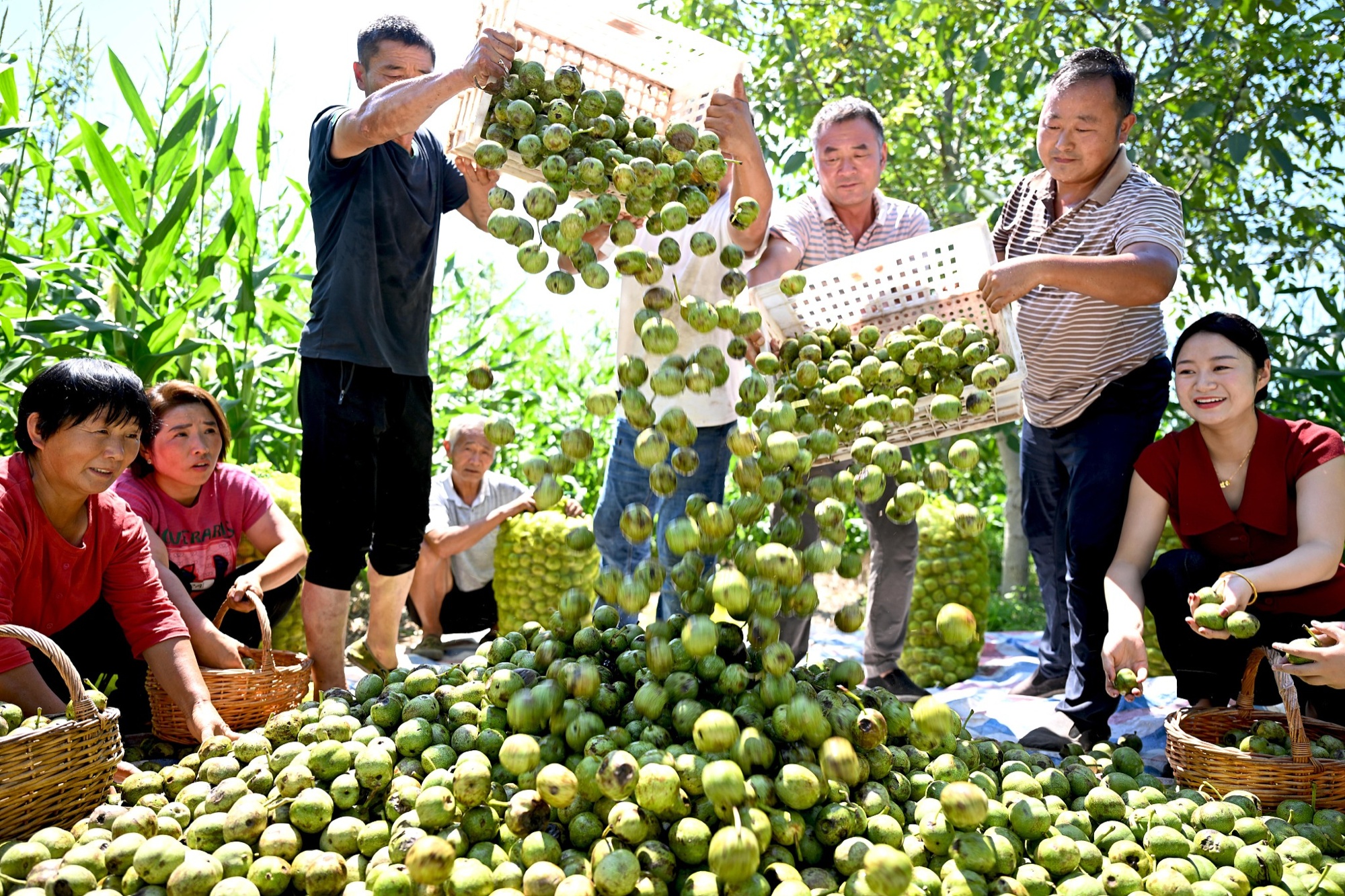 安徽省亳州市村民收获鲜核桃