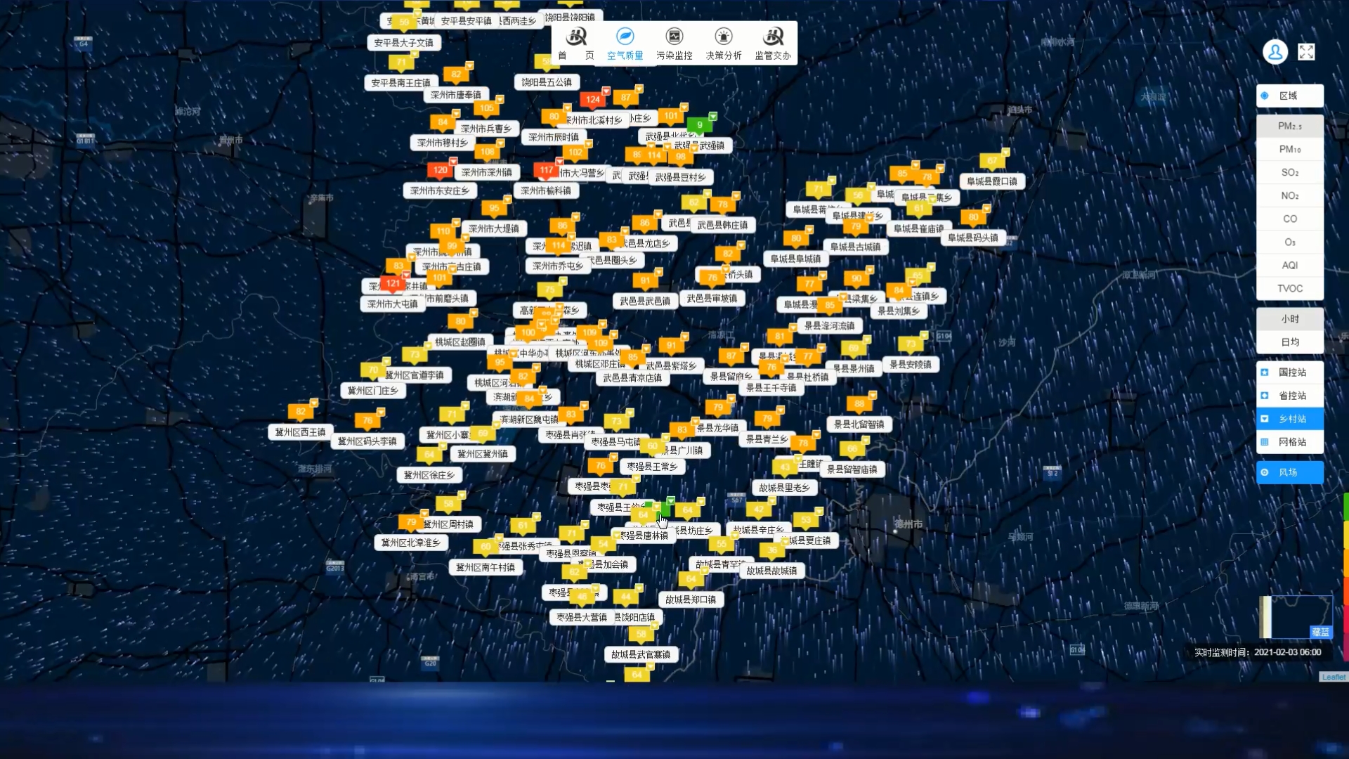 衡水市涉气排污企业监管平台,可对全市6221家重点排污企业基本信息、环评手续、自行监测等内容进行在线采集、报送、预警、监管,极大地提高了执法效率。