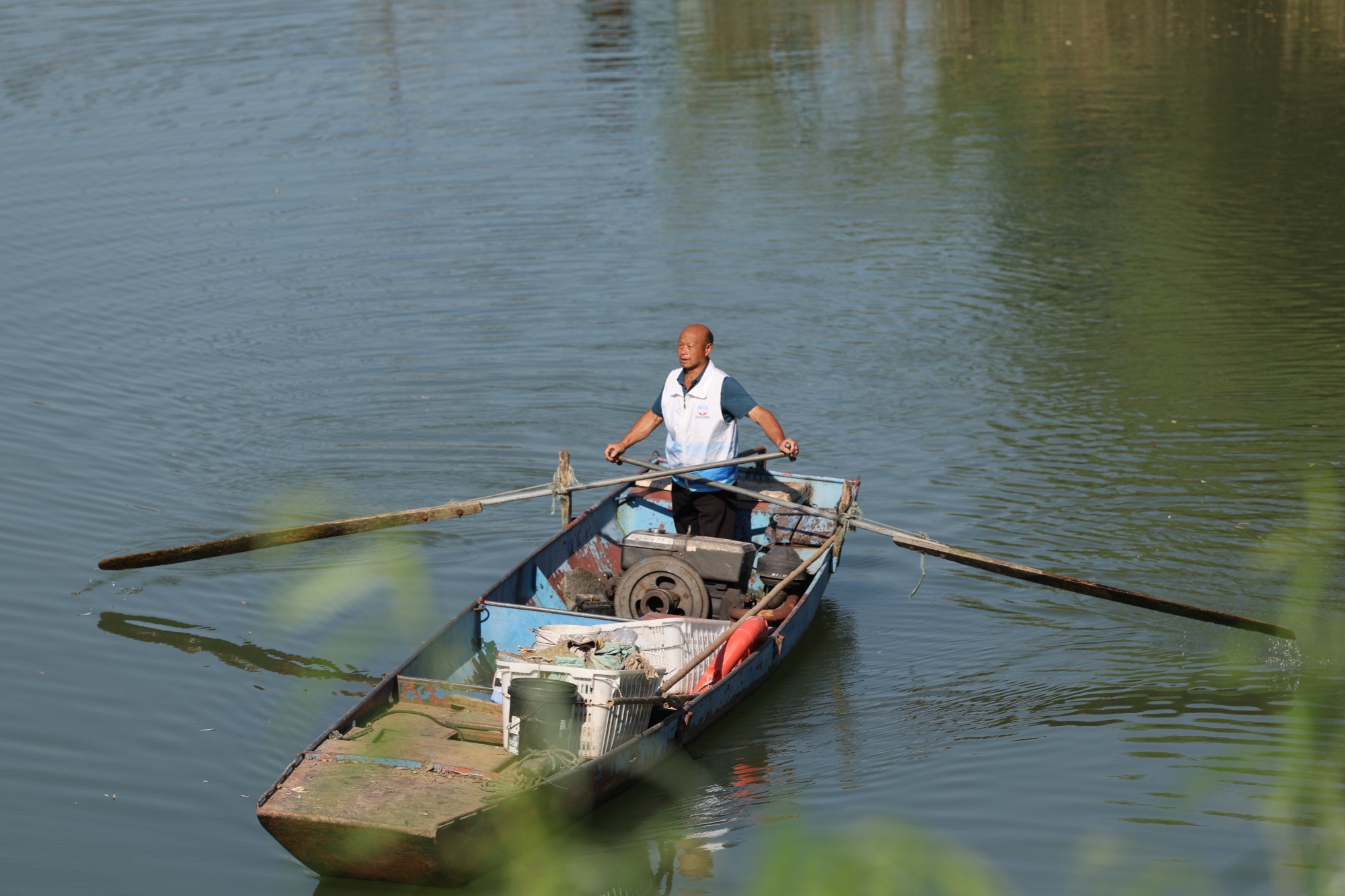 63岁的蒋德新是护水队年龄最大的成员
