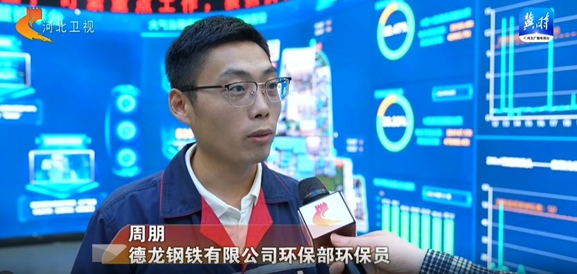 德龙钢铁是我省乃至全国民营钢铁企业中,首家环保绩效A级的企业。现在我所在的位置就是德龙钢铁的智能环保管控平台,大屏上实时显示着各项主要环保指标的各项数据。颗粒物的数值是1.04mg/m³,二氧化硫是2.32mg/m³,氮氧化物是16mg/m³左右。