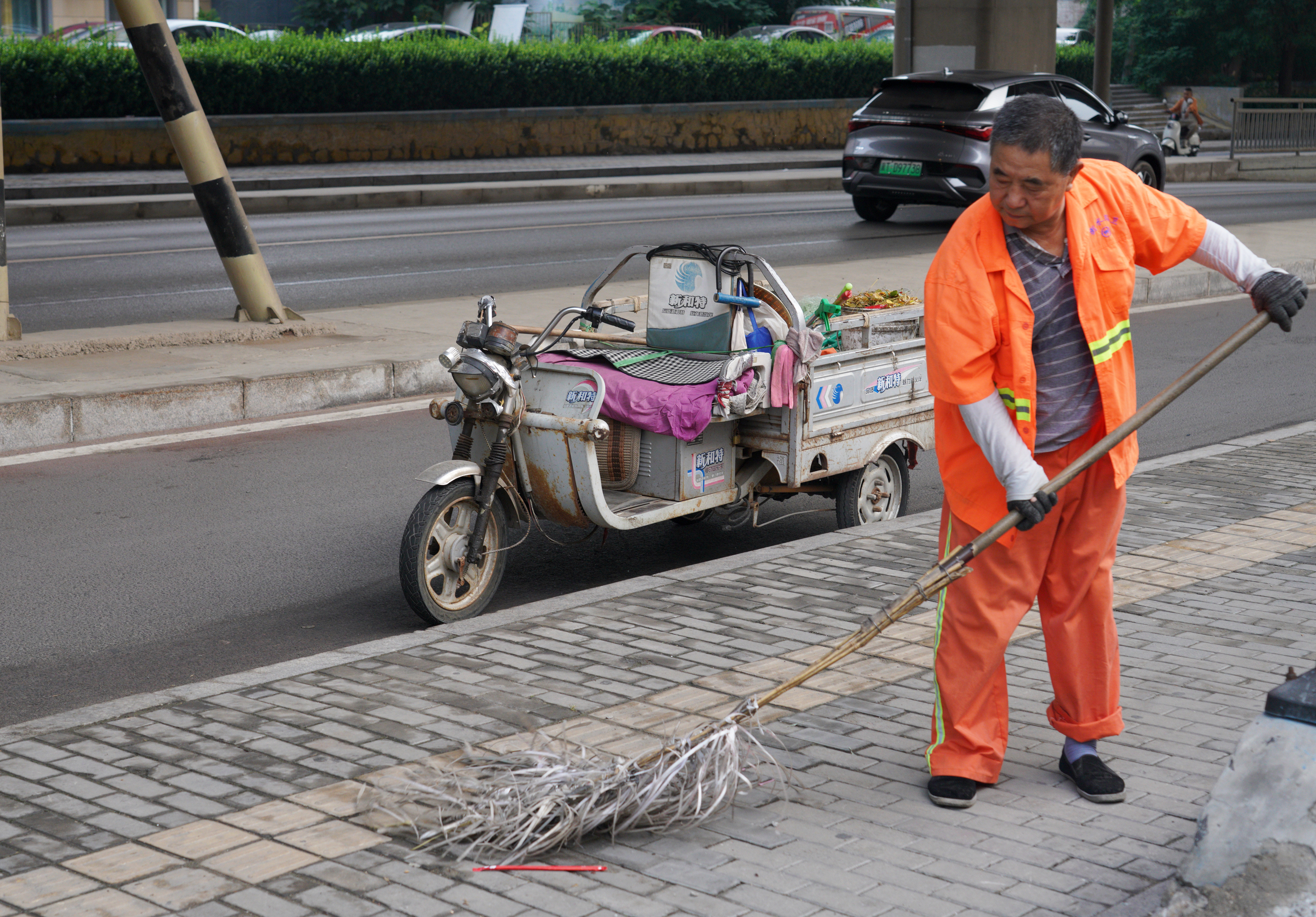 清晨, 当大多数人仍在梦乡时,环卫工人们已经开始了他们的工作。天刚蒙蒙亮,他们穿着醒目的橙色工作服,手握扫昂,认真清扫街道,环卫工人的劳动为城市带来了整洁与美丽,成为了晨光中一道温暖的风景。