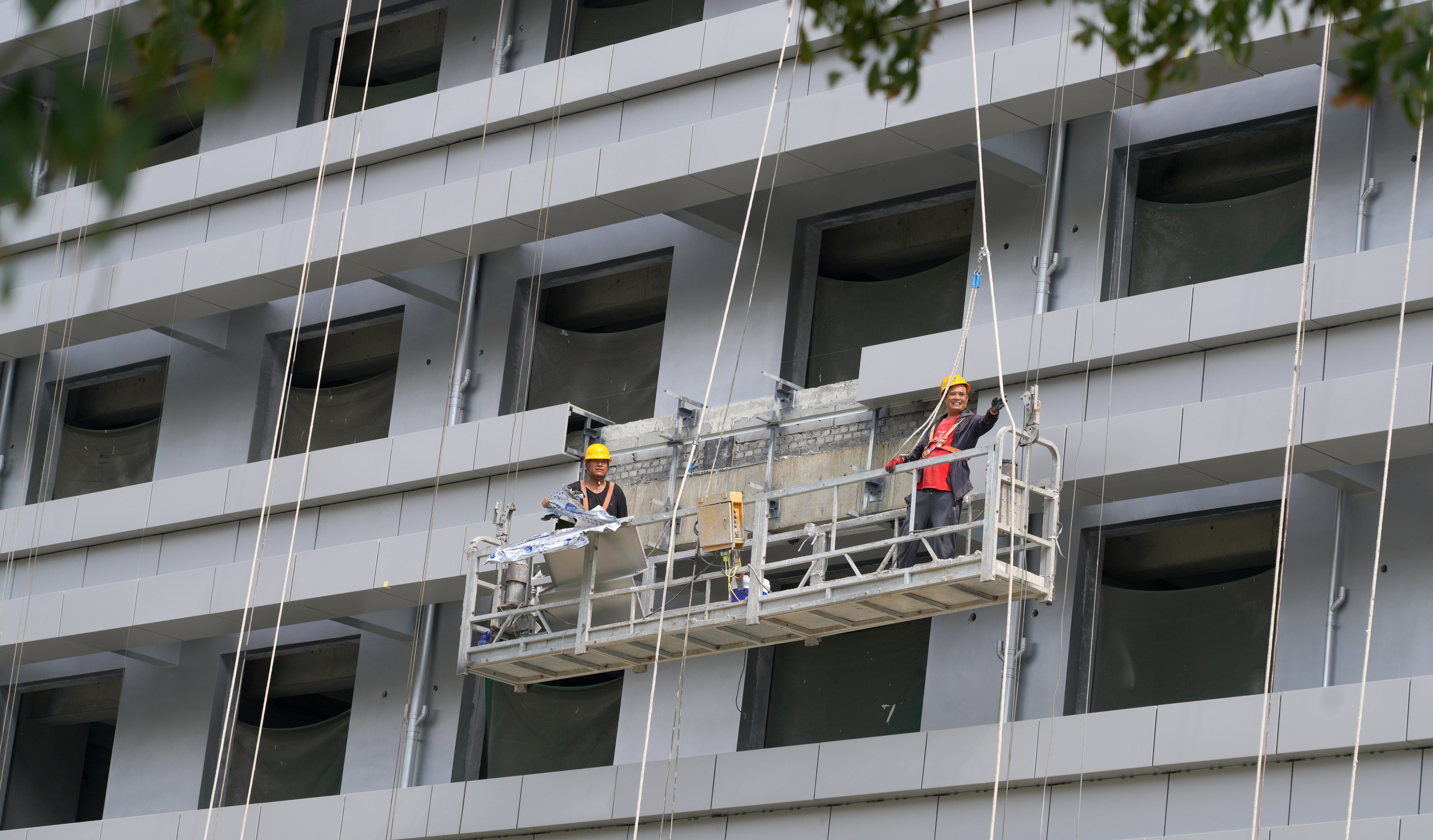 烈日当空,建筑工人们顶着炎炎烈日在高空中作业。戴着安全帽,身悬脚手架,他们努力建造着城市的天际线。每一块砖石的堆砌都凝结着他们的汗水和辛劳, 他们的工作让这座城市不断向上生长,构筑出宏伟的者市风貌。
