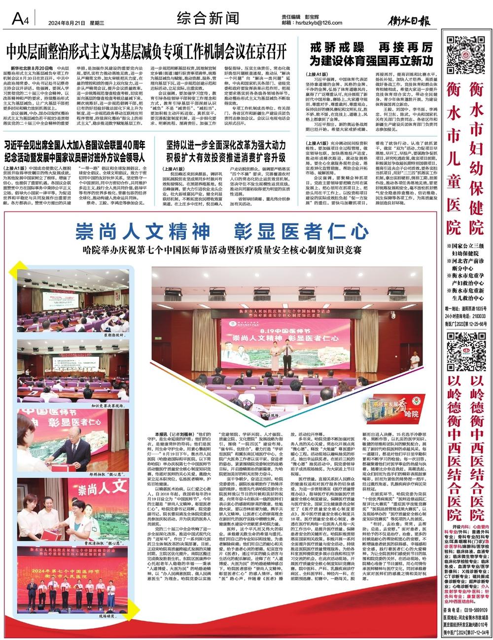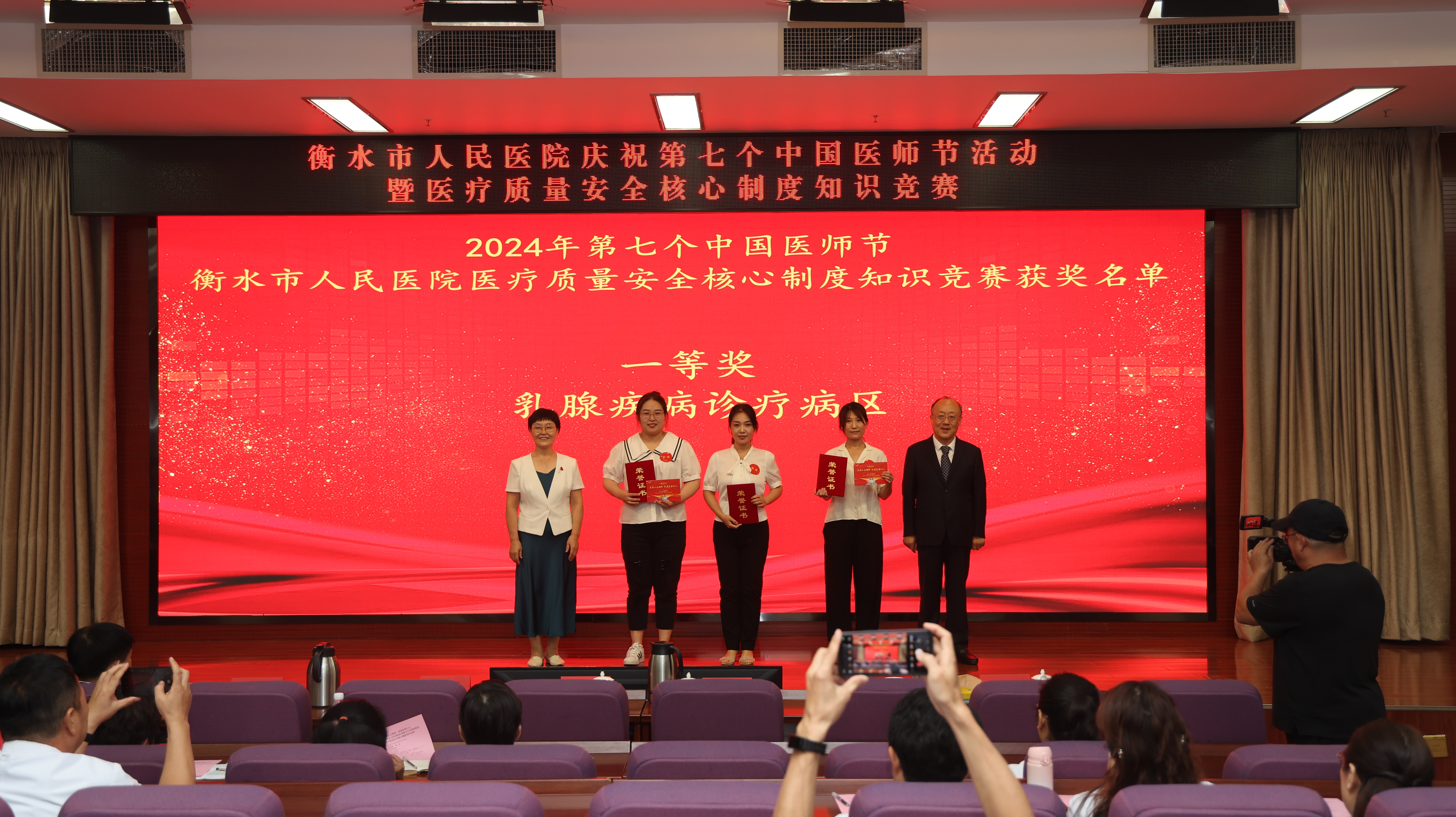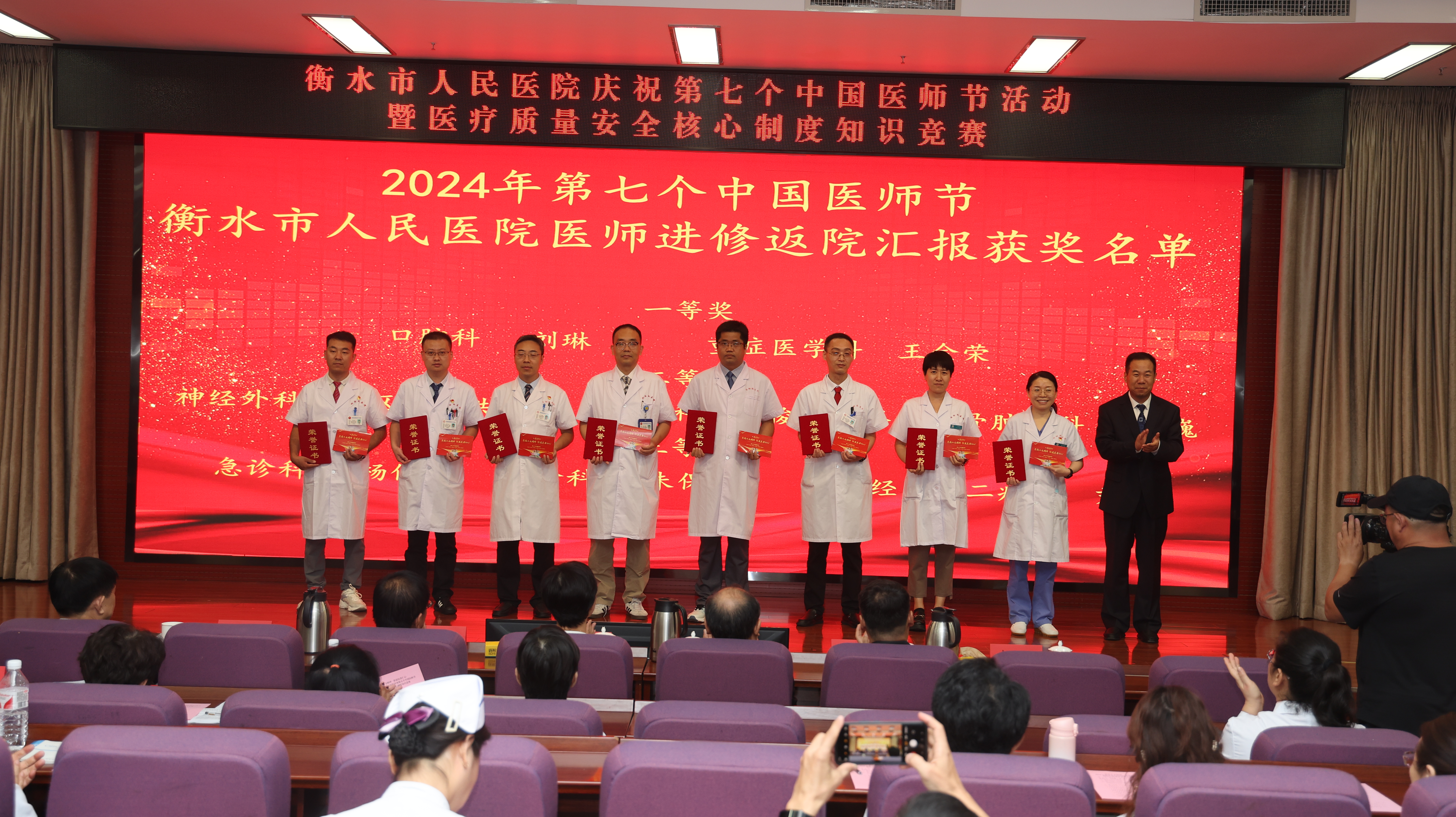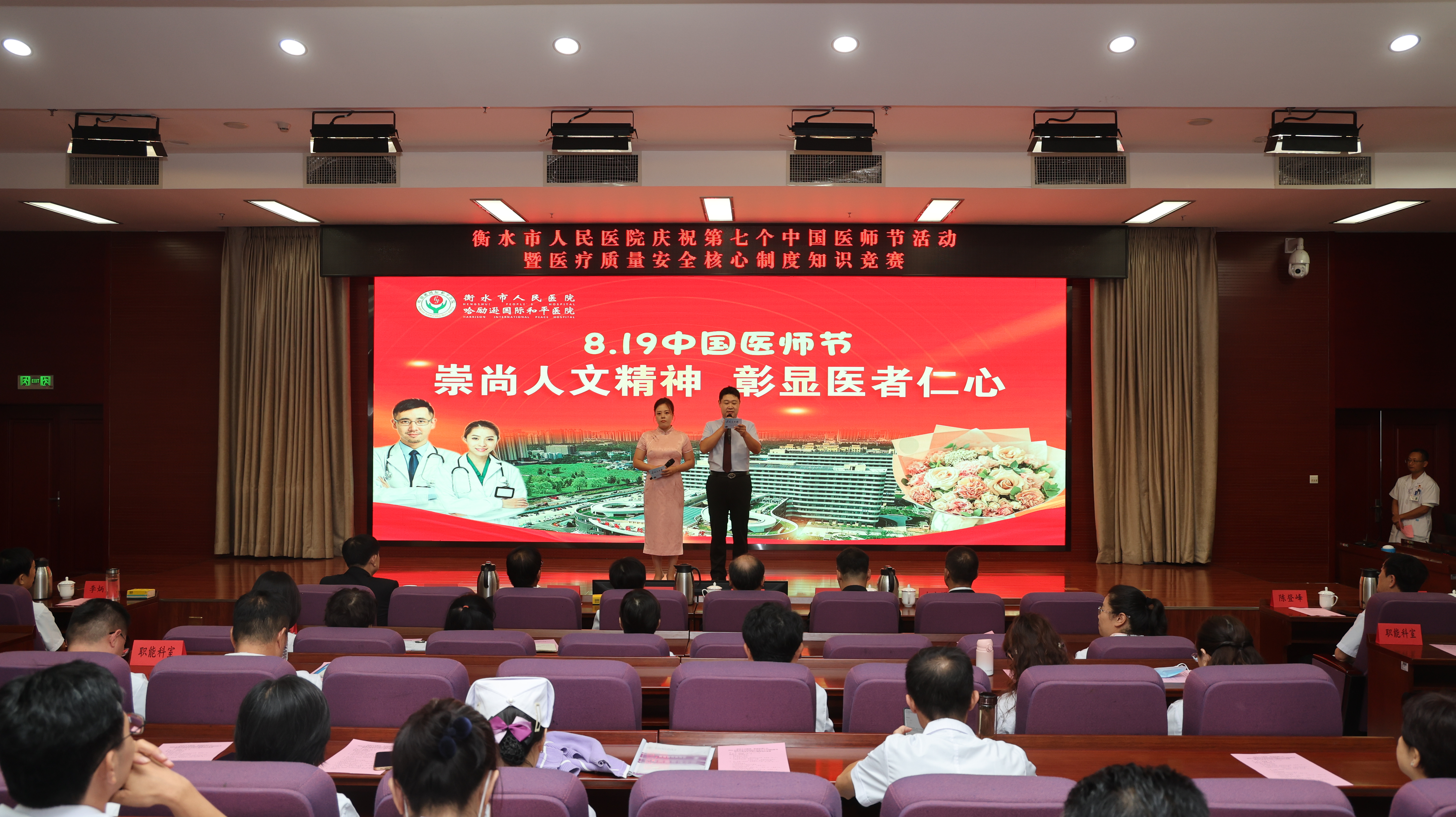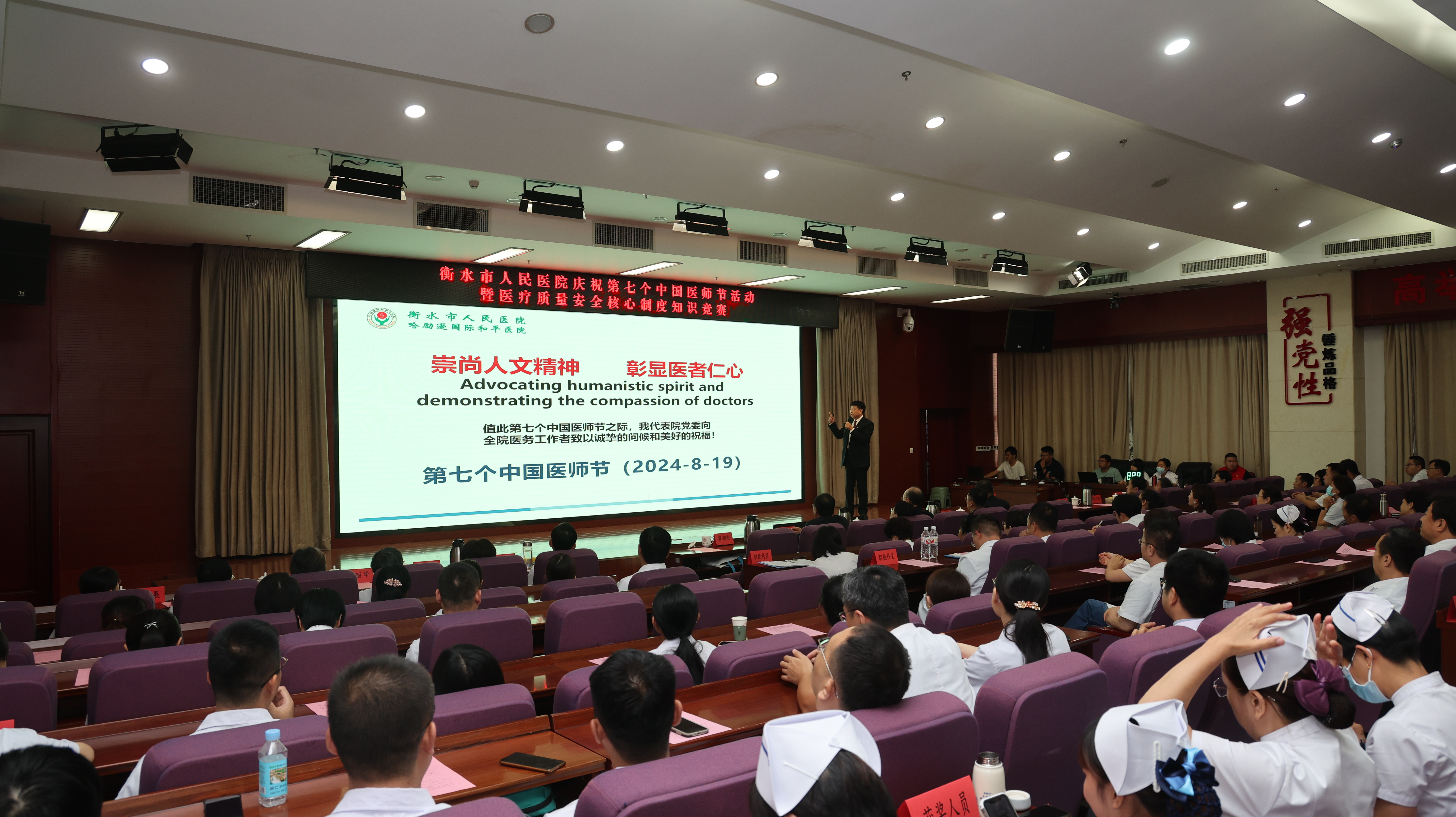 8月19日下午,衡水市人民医院(哈励逊国际和平医院)举办庆祝医师节暨医疗质量安全核心制度知识竞赛活动,传递对医师的关心关爱,激励大家立足本职岗位,弘扬医者精神,护佑百姓健康。