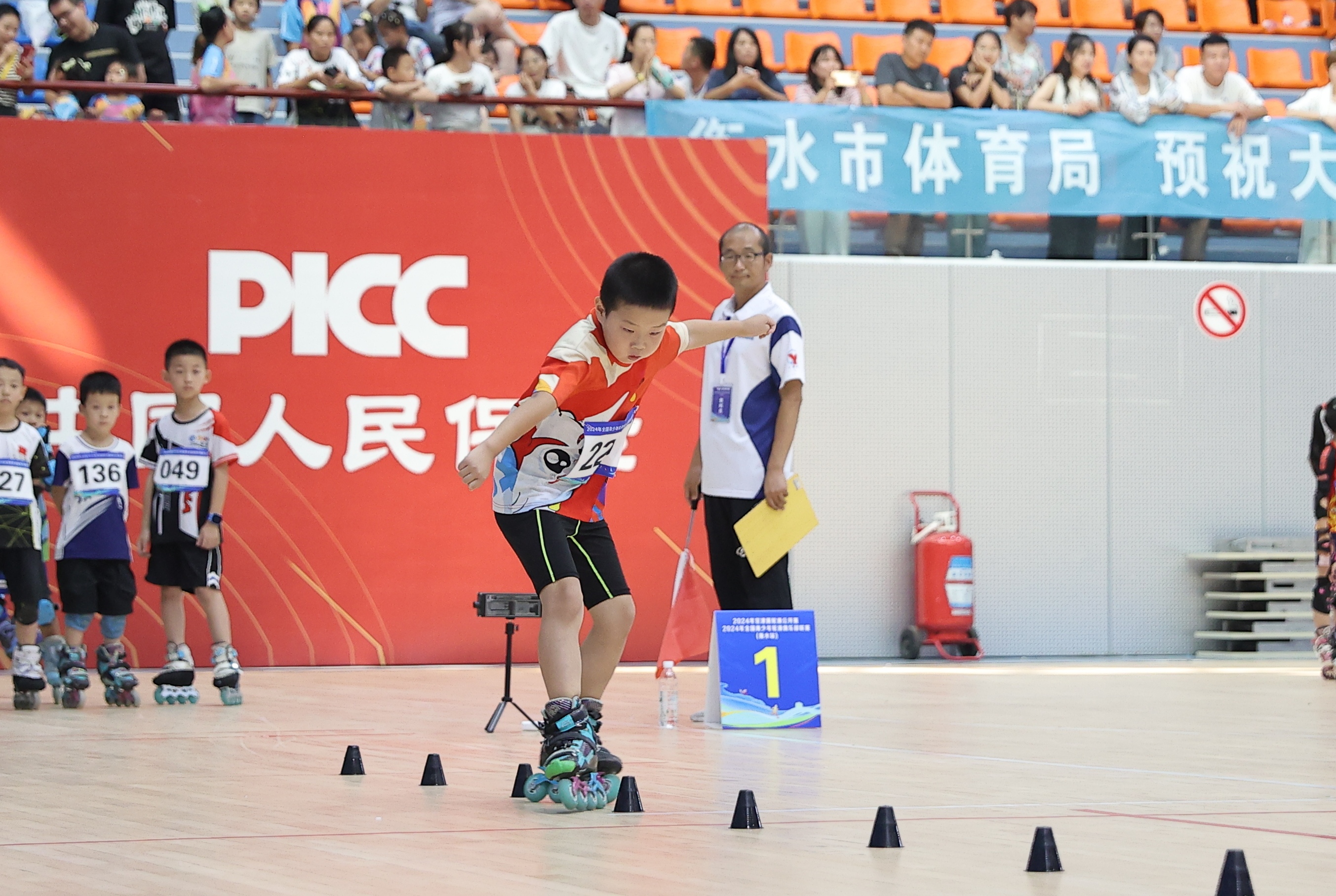 比赛分青年组、少年甲组、少年乙组、少年丙组、少年丁组、儿童组、公开组共7个组别,设置速度轮滑和自由式轮滑两个项目。其中,速度轮滑设置200米计时赛、500米+D争先赛、1000米争先赛等比赛项目;自由式轮滑设置速度过桩、花式绕桩、Fish绕桩竞速、Cross绕桩竞速、单排花式绕桩等比赛项目。赛场上,轮滑小将们凭借着娴熟的技术像风一样在赛道上滑行,一声声的加油呐喊,一次次的侧身绕桩,一步步的奋力冲刺,点燃了整个赛场!