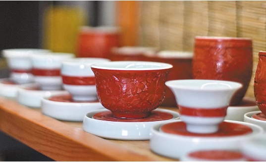 2017年,朱江与廊坊师范美术学院的师生们携手成立工作坊,共同创作了一系列融合传统与现代元素的雕漆作品,包括青瓷雕漆茶具、婚庆饰品、现代潮玩摆件和装饰艺术品等。“我们希望通过这些作品,让非遗以全新的面貌呈现,吸引更多年轻人的关注。”工作坊的一位学生表示。这一系列创新实践,不仅让雕漆艺术重焕新生,更激发了年轻一代对传统文化的热爱与传承。