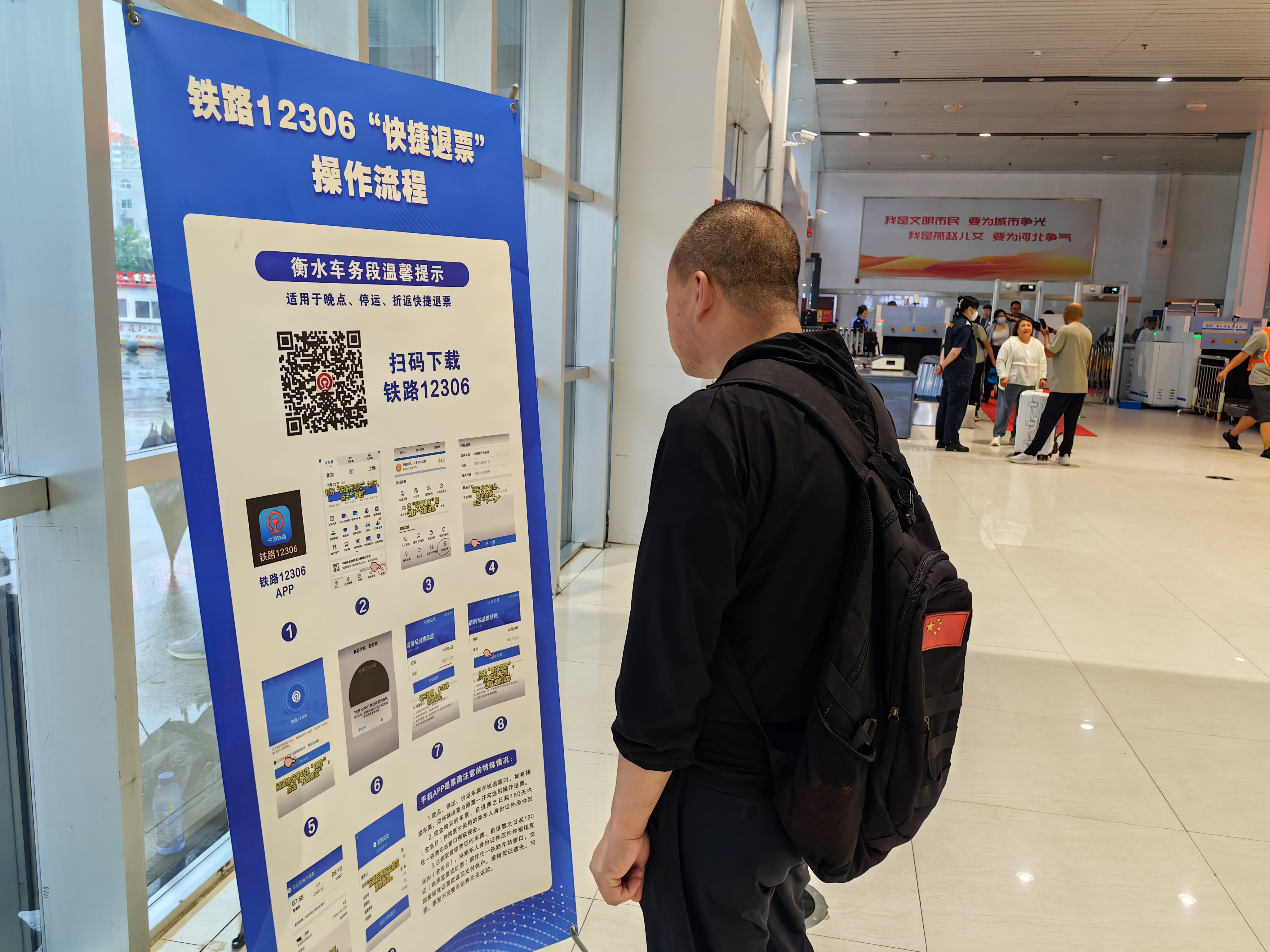 为应对此次强降雨,衡水车务段成立应急指挥办公室,24小时派人在岗值守,关注各站降雨情况,做好提示提醒,协调指挥应对。抽调37名干部深入各车站,采取领导班子成员包段、专业科室干部包站、车站干部及休班党团员停休等措施,利用加人上岗,分工负责,划分责任区域,织密工作网格等方式,加强候车室巡视,解答旅客问询,做好引导服务,并强化站内广播,提示旅客注意雨天路滑,确保出行安全有序。