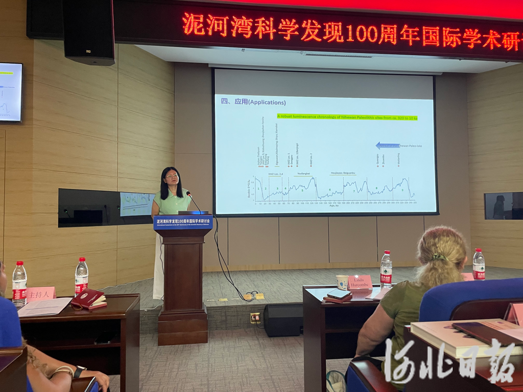 8月23日,在泥河湾科学发现100周年国际学术研讨会上,一位学者在作报告。河北日报记者魏雨摄