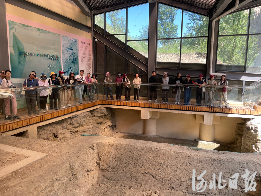 8月21日,参加泥河湾科学发现100周年国际学术研讨会的专家学者来到马圈沟遗址参观考察。河北日报记者魏雨摄
