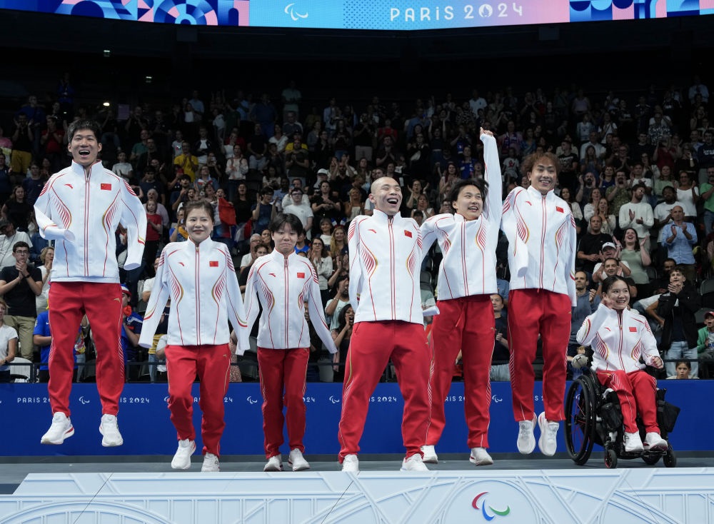 新华社巴黎8月30日电(记者马思嘉、张薇)30日晚的巴黎拉德芳斯体育馆,巴黎残奥会男女混合4X50米自由泳接力20分决赛上演。诸多目光被中国队最后一棒选手吸引——他不戴泳帽、剃了光头,抵达终点时用头奋力撞向池壁,为中国队锁定金牌,并以2分14秒98打破世界纪录,领先排名第二的美国队4.01秒。