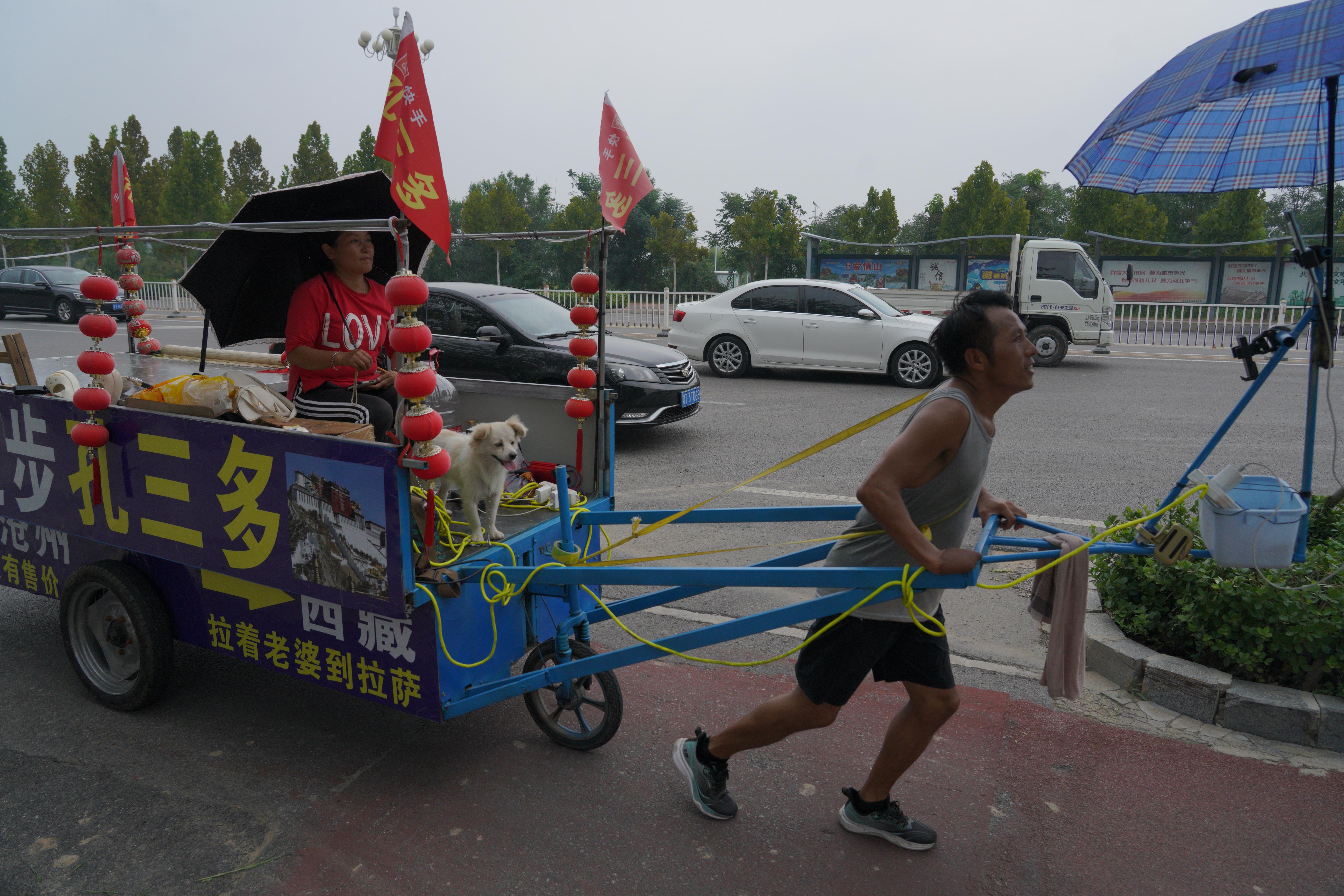 迎着微凉的小雨,孔三多沿着衡水市桃城区红旗大街拉着车一直往南奔跑着,这是孔三多徒步拉车去西藏的第33天。一边直播,一边感受沿途城市风土人情。如今,他和未婚妻肖大美正途经衡水,白鹭踩荷,在风光秀丽的衡水湖旁直播时,他告诉我们,预计十个月,他们就可以进入西藏,计划明年8月底抵达拉萨。
