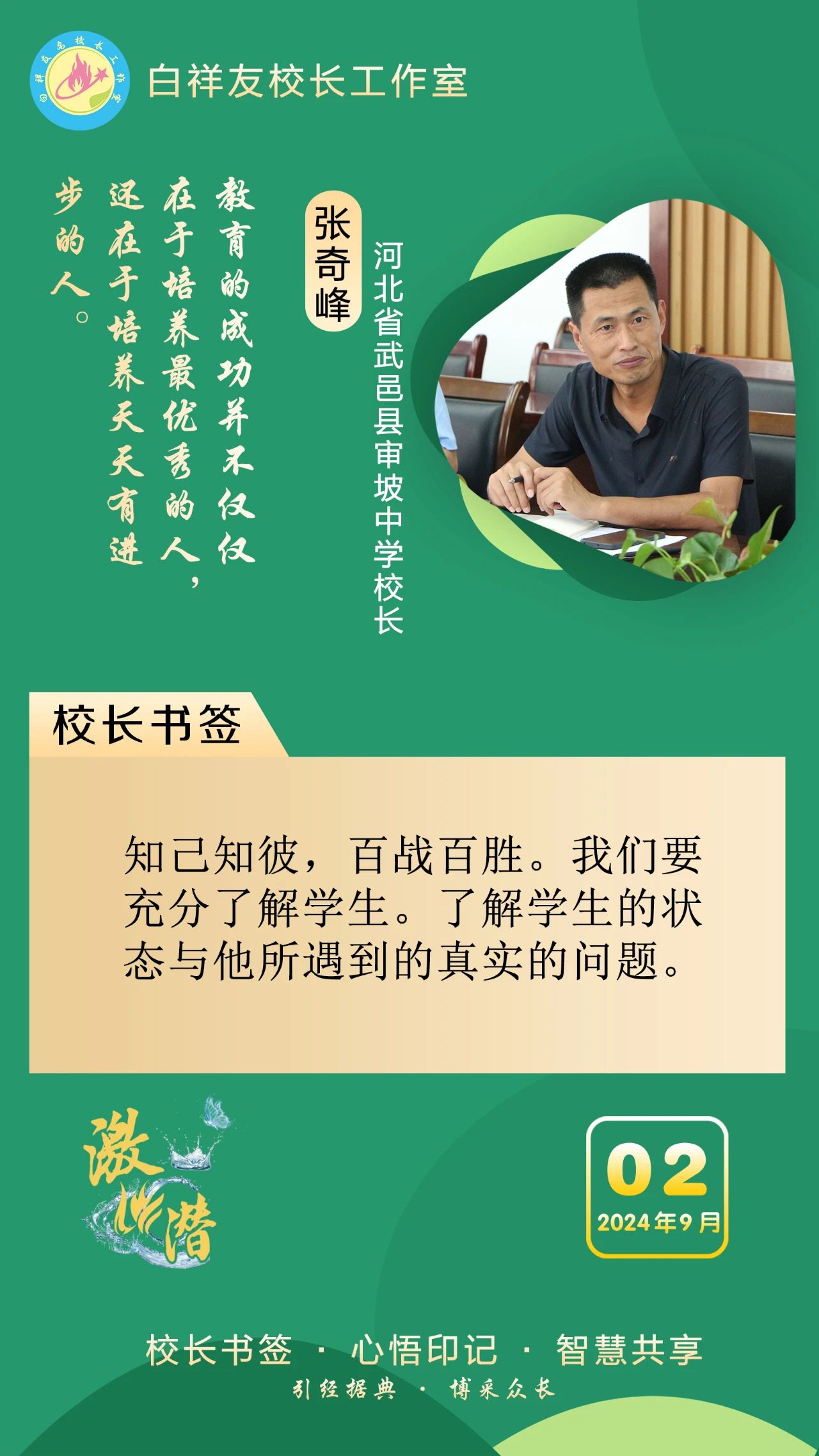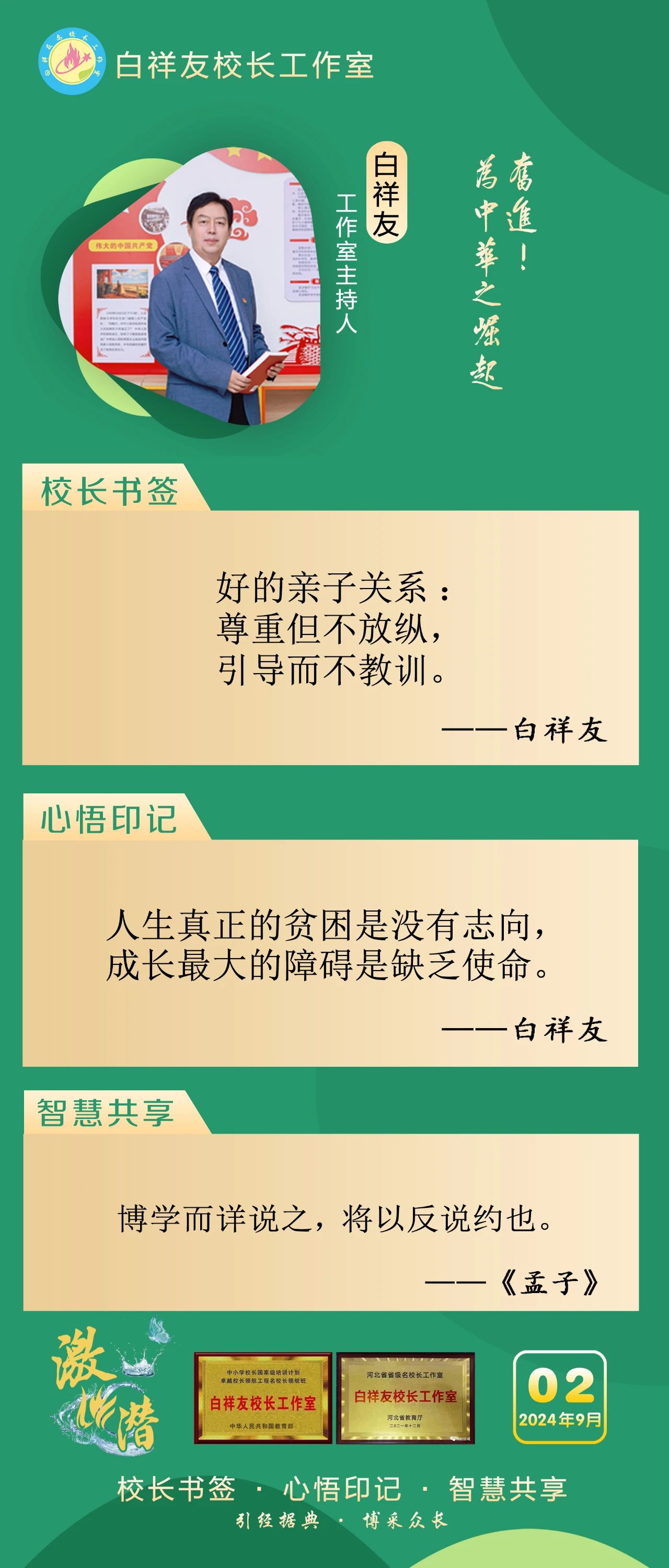“白祥友校长工作室”成立于2019年4月,是教育部“国培计划”中小学名校长领航工程、河北省首批名校长工作室,目前省内外成员校24个。工作室坚持“资源共享、智慧共融、互助共赢”理念,已成为思想碰撞的交流场,资源共享的品牌站,成果展示的辐射源。