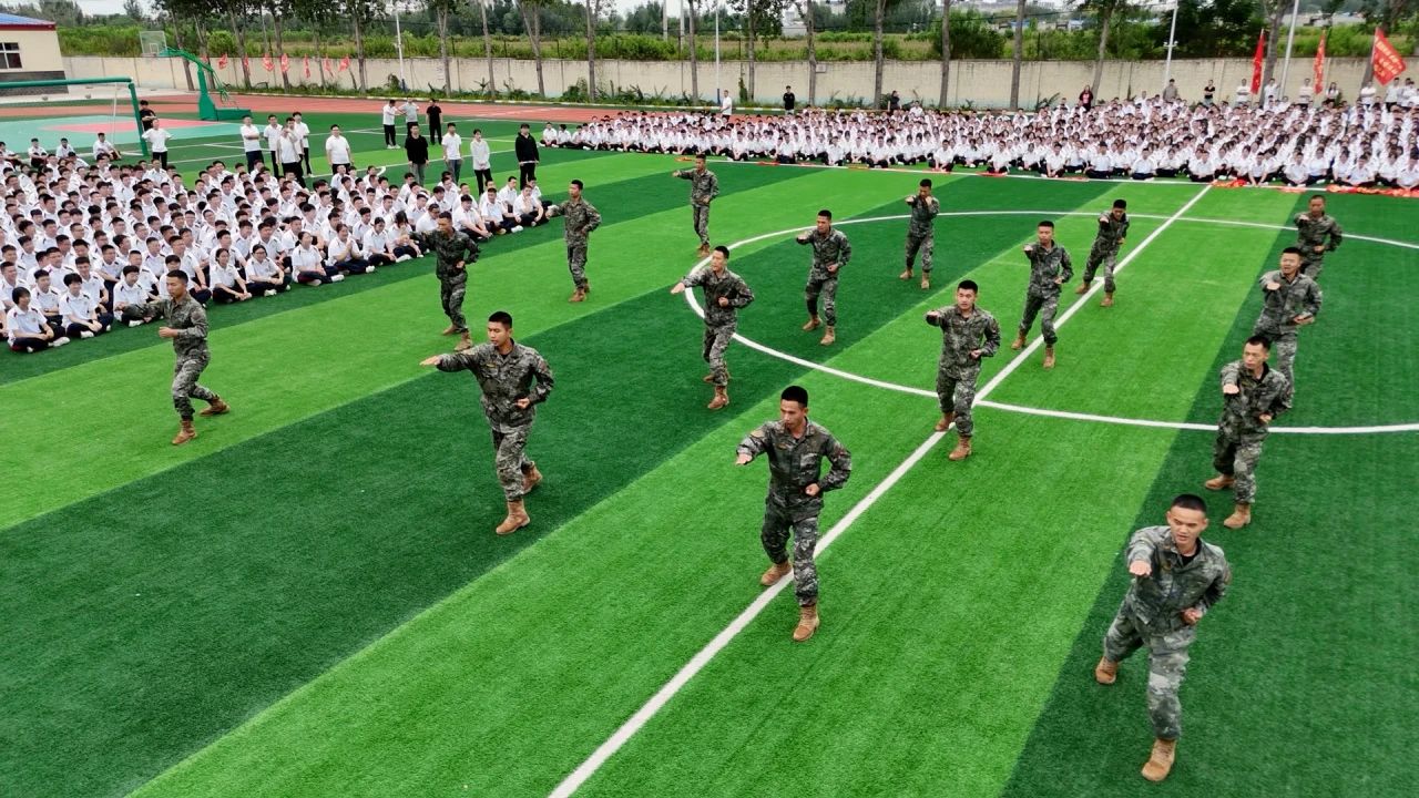 以军训之名,赴青春之约;踏铿锵步伐,赴青春征途。为培养学生爱党爱国的崇高情怀,历练学生意志、强健体魄,促进全面发展,9月2日,衡水十三中举行了2024级高一新生军训开营仪式。武警衡水支队参谋部李格参谋,衡水市教育局督学、衡水市第十三中学党委书记白祥友,党委副书记、校长安志平,党委委员、副校长李永忠,党委委员、副校长姜德余,党委委员、纪委书记刘学通,高一年级主任张二欢、王祝敖、李爱国等相关校领导及全体教官出席开营仪式,全体高一级部老师及学生参加。
