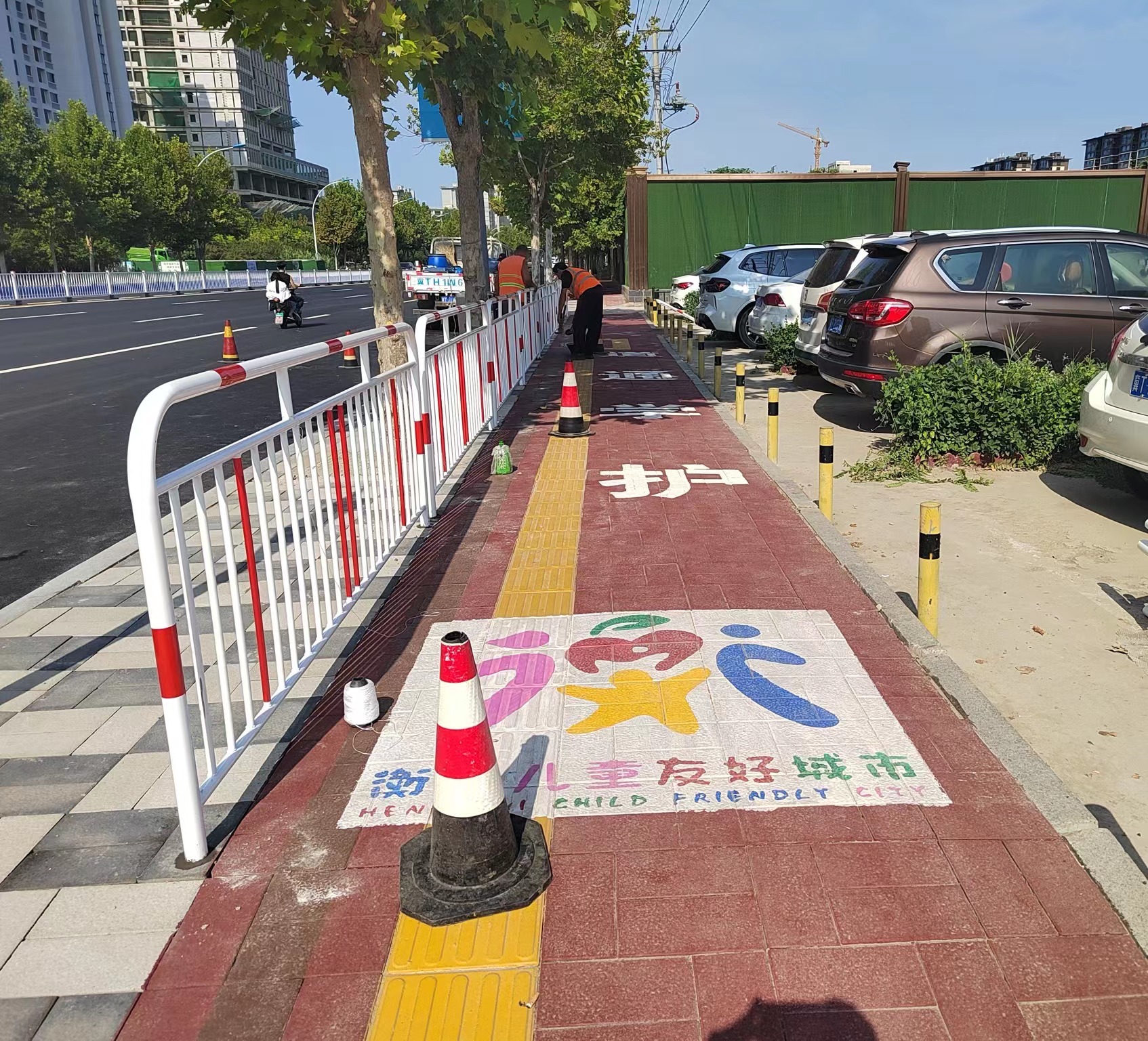 3日上午,在市区实验小学门前两侧,记者看到,红色的便道砖上,画上了“衡水儿童友好城市”的彩绘图案,“学校周边便道改造过后,不仅更美也更安全了!”“小小便道砖,体现了城市的温度!”前来送孩子上学的家长门纷纷表示。建设儿童友好城市,事关广大儿童成长发展和美好未来。为贯彻落实我市关于推进儿童友好型城市建设的部署要求,市城管局谋深谋实具体举措,确保工作成效。按照工作安排部署,市政工程管理中心将其与正在实施的海绵城市人行道铺装工程相结合,实现了两项工程的同步推进,既圆满完成了海绵城市建设的既定目标,又高效铺设了儿童友好通学路径,有效避免了重复施工与资源浪费。为确保施工顺利进行并最大限度减少对学生日常通勤的影响,市政工程管理中心利用暑假期间抓紧施工,截至8月底实验小学、十五中、北门口小学等共计14所学校已全部完成提升改造工程。这些学校的道路环境得到了显著改善,为孩子们提供了一个更加安全、舒适的学习环境。