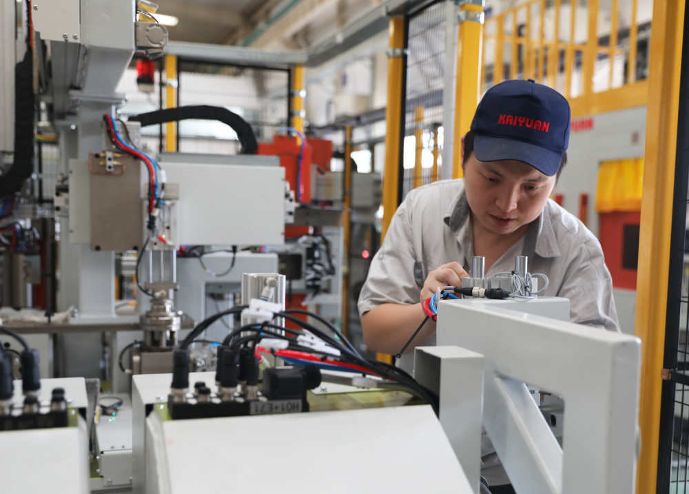 在位于唐山市高新区的唐山开元自动焊接装备有限公司组装车间,技术人员近日正调试一套全新的焊接机器人系统,该产品将应用于国内一些新能源汽车生产商的减震器生产线。
