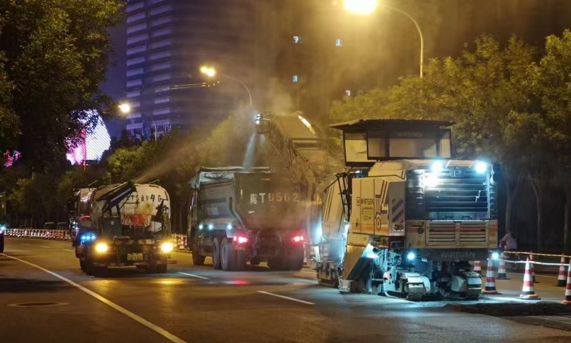 为最大限度不影响群众出行,市城管局安排大部分路段采取夜间施工和分段分幅施工的方式,尽最大力度实现“无感施工”,保证第二天早高峰时群众能够正常通行。8月22日进场施工以来,累计完成罩面18.2万平方米,目前,三条道路罩面摊铺主体工程已经全部完成。