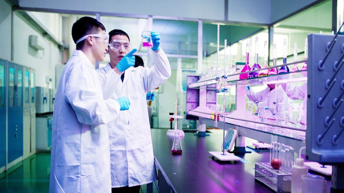 在华密新材的实验室,工作人员进行材料化学性能检测。受访者供图