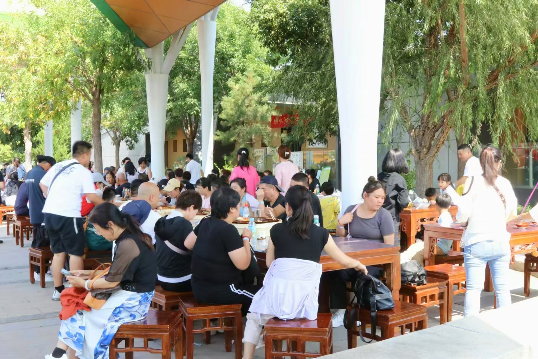 先闻墨香,后嗅鱼香。一阵阵香气飘来,让人欲罢不能,此时饥肠辘辘的游客寻着香气看到了整齐排放的十米长桌。