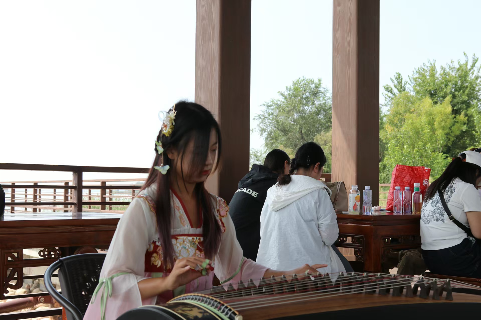 下船登岛,平时宁静的梅花岛今日也格外热闹,随着游船驶过画舫来到岸边,一段优美的古筝琴声顺着宁静而广阔的湖面飘过来 ,岸边演奏的古风少女和湖中的小舟共同构成了一幅和谐的画面。传统音乐演奏使得梅花岛的每一个角落都充满了节日的氛围。这一天,衡水湖不只是渔民的乐园,更成为了传承和教育的场所,让每一位到访者都能感受到传统与自然和谐共融。