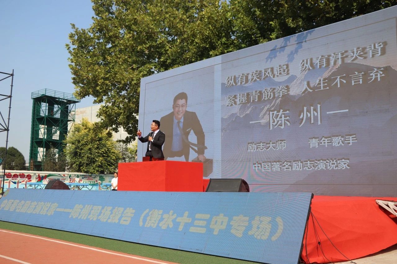 走进奋进能量场,遇见更好的自己。9月7日,衡水十三中特邀全国著名励志演说家陈州老师为全校师生带来了一场震撼心灵的励志报告。