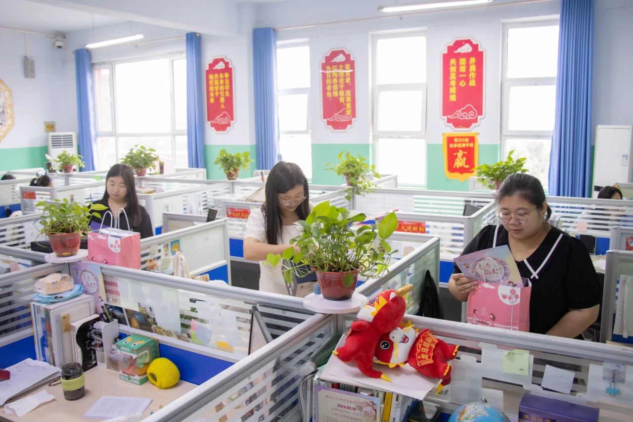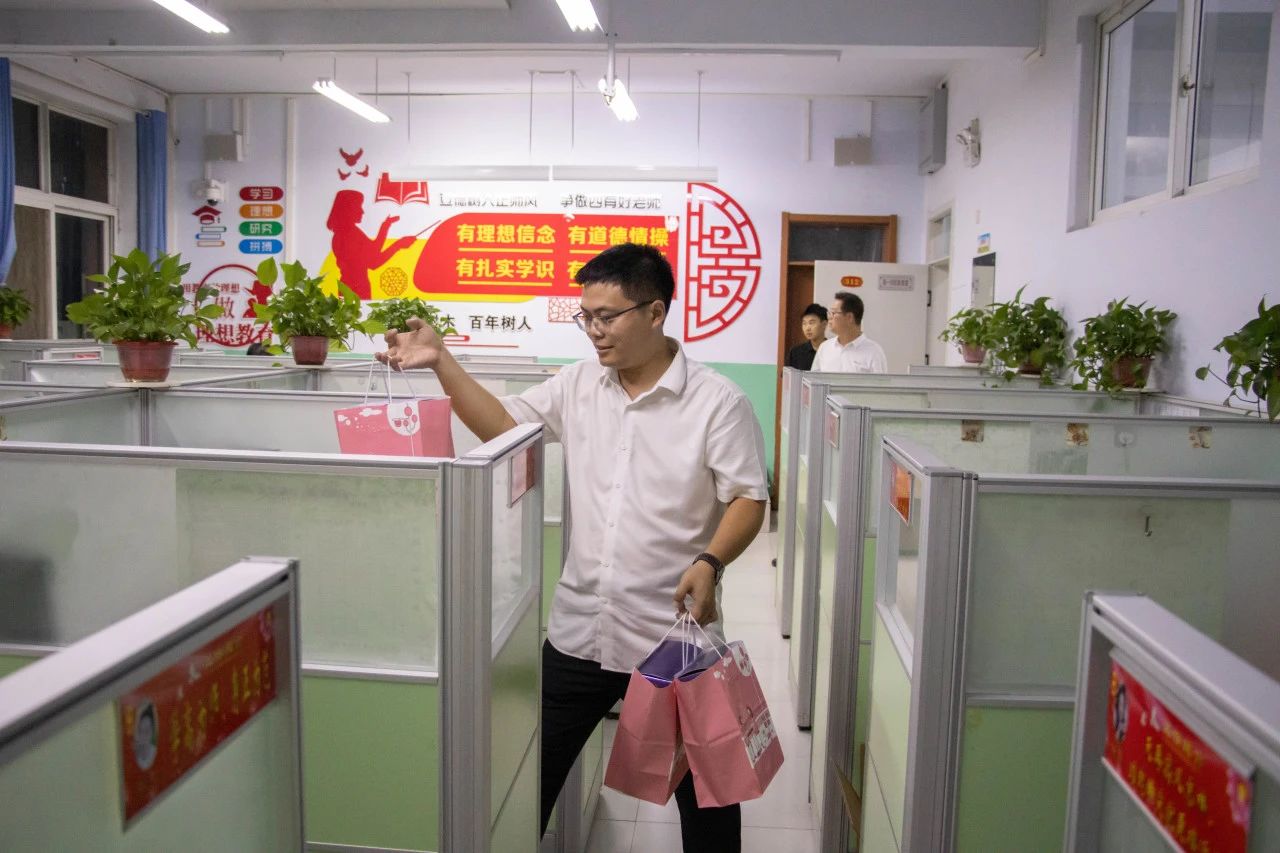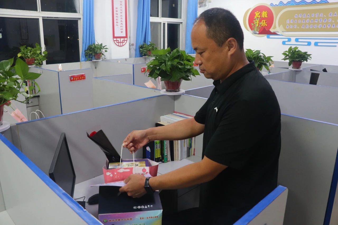 教师节前夕,校领导和中层干部“悄悄”策划了一场惊喜行动,他们在老师们下班离校后,在每一位教师的工位上放置了精心挑选的教师节礼物。这些礼物不仅包含了对老师们辛勤付出的认可与感激,更寄托了学校对老师们工作和生活的美好祝愿。