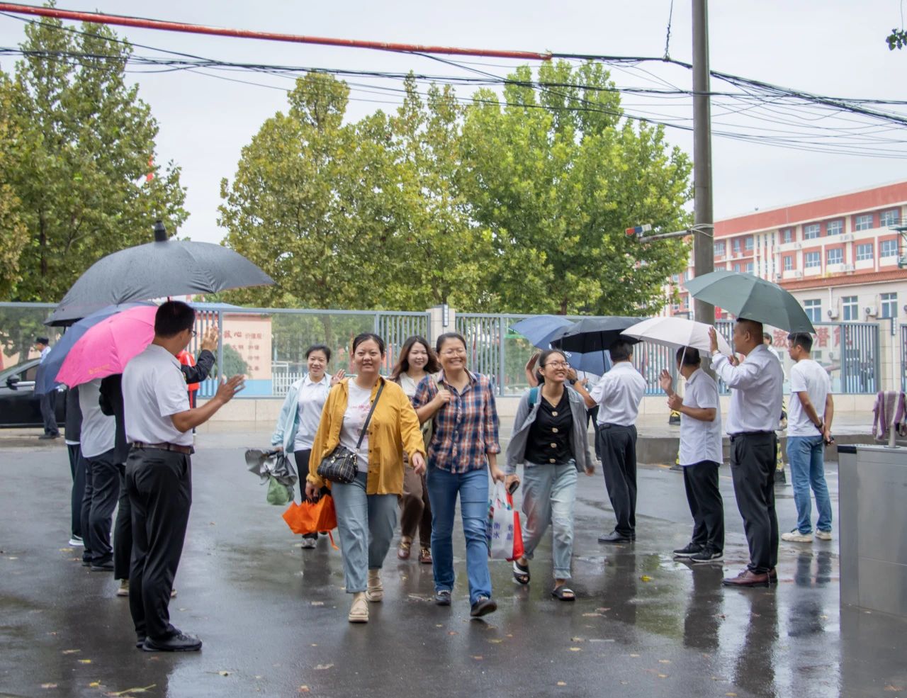 教师节当天清晨,秋雨绵绵,凉风阵阵,十三中校领导及中层干部早早守候在大门口,面带微笑,为每一位踏入校门的老师送上最诚挚的节日问候。伴随着微微秋雨,老师们陆续到来,开心挥手回应这份特殊节日里的迎接与问候。