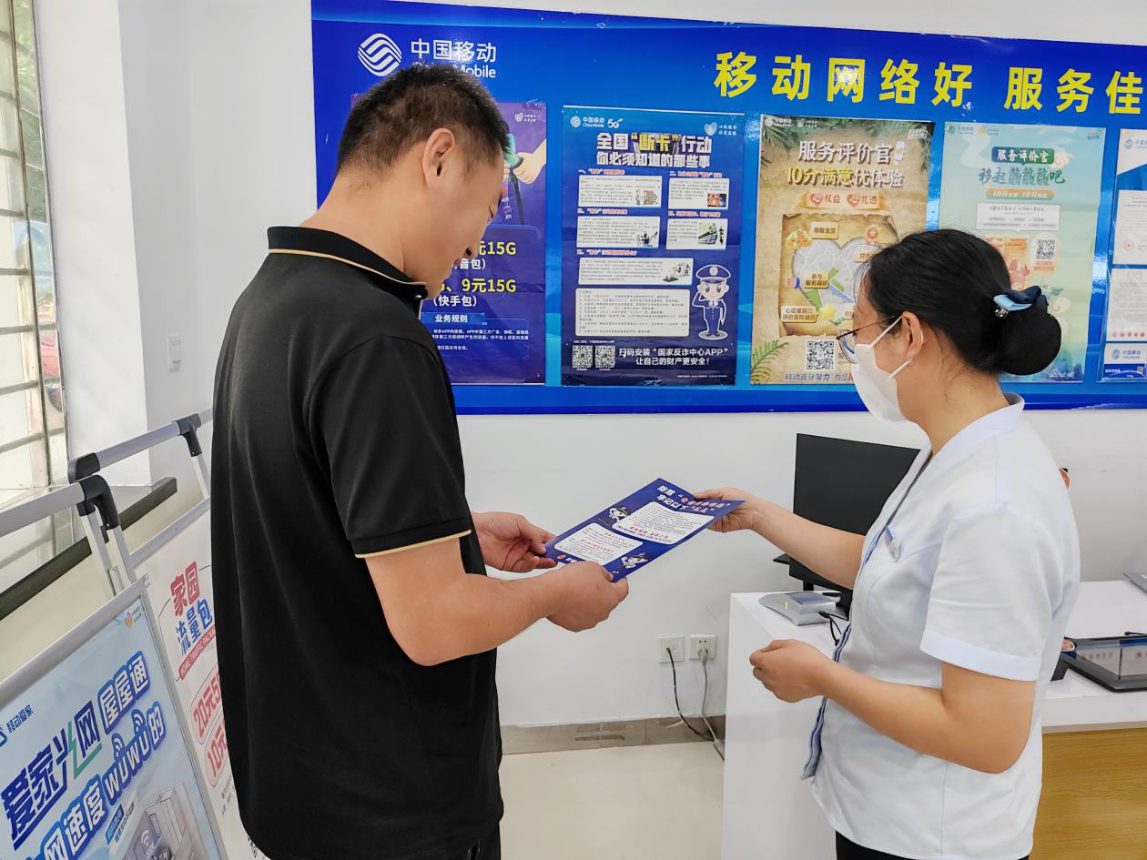 衡水移动各营业厅通过电子屏、电视机等循环播放网络安全相关案例,不定期开展“反诈”讲堂,“不要随便点开不明人员发送的网址链接!”“不明电话不要接听、可疑短信不要回”“凡是标榜高回报的网络投资理财,都是诈骗”……志愿者对进厅用户讲解防诈知识、如何做好密码保护、电话卡遗失后如何报停补办等,用移动力量守好用户钱袋子,避免掉进网络诈骗的“坑”。同时,在业务受理过程中,严格执行用户实名制入网,做好源头管控。