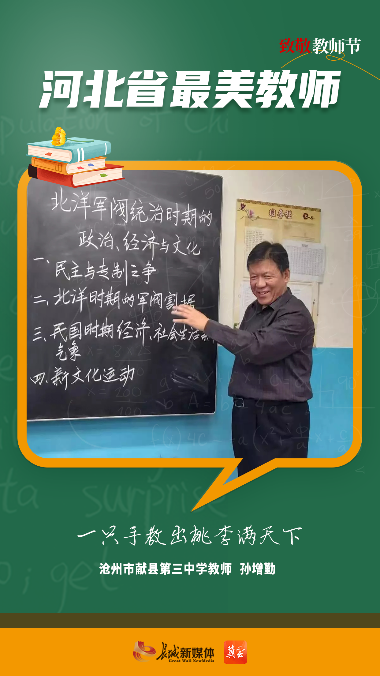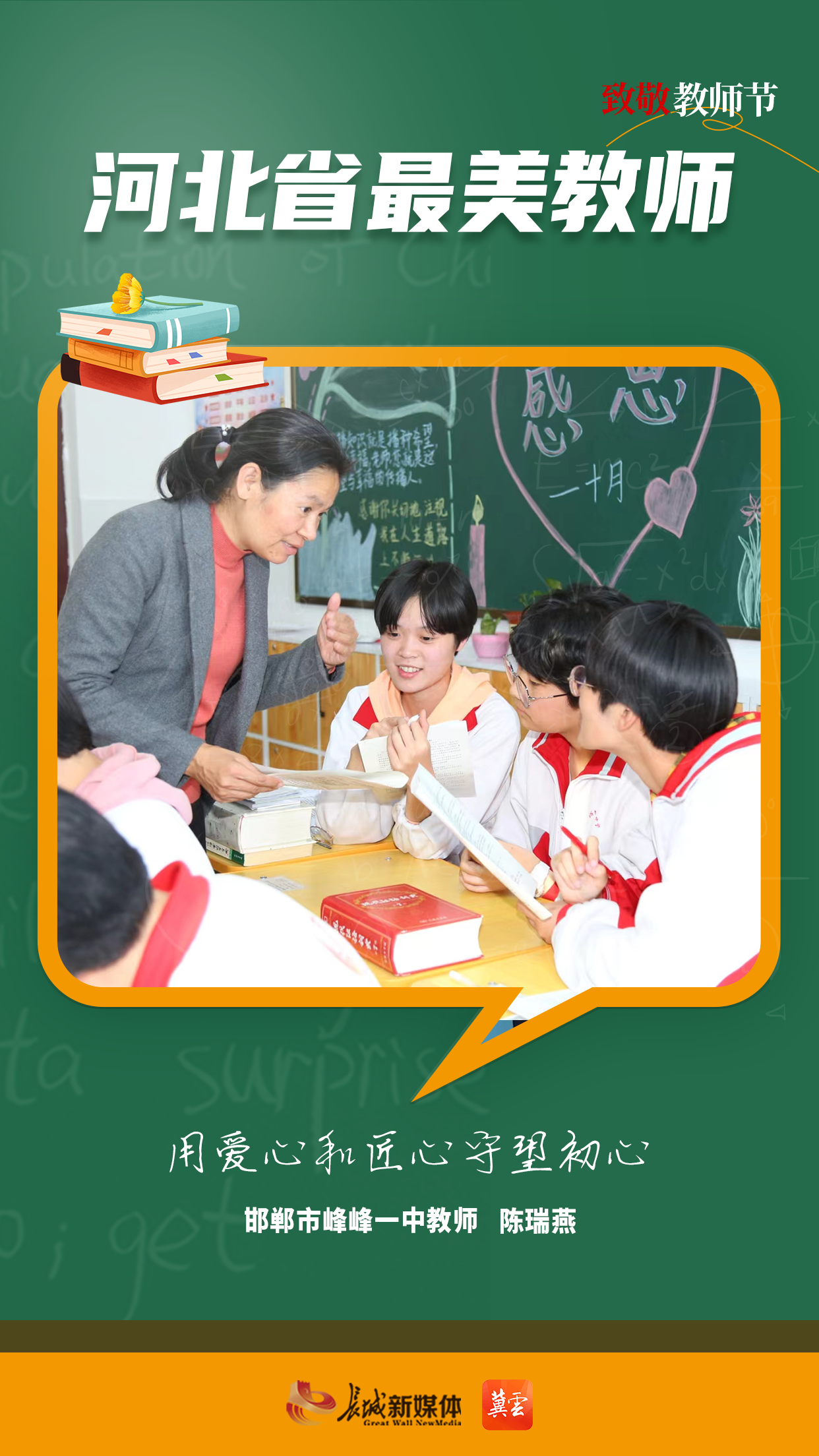 师者如光,微以致远。在第四十个教师节到来之际,河北省教育厅公布2024年度河北省“最美教师”人选。他们躬耕教坛,用爱心、耐心和智慧,为学生们编织着知识的梦想,诠释着新时代“四有”好老师的丰富内涵。今天让我们向最美教师致敬,向成长路上的提灯引路人致敬!
