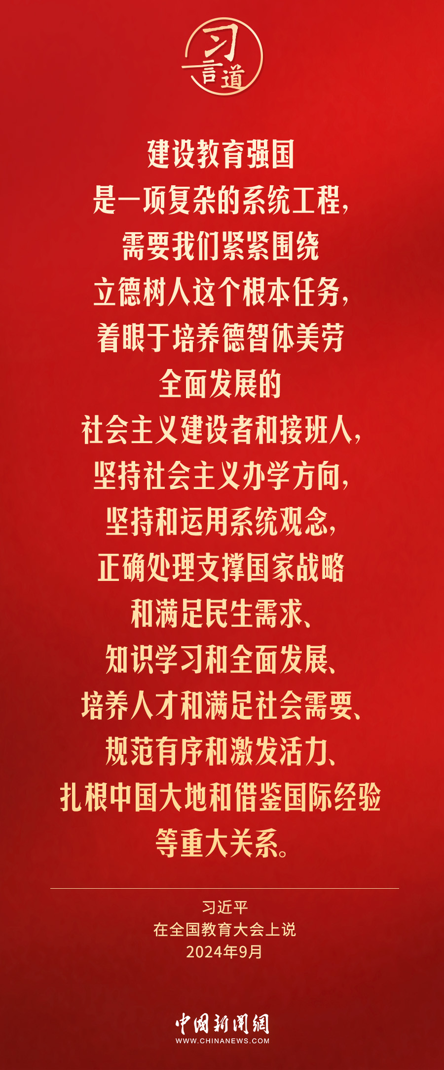 全国教育大会9日至10日在北京召开。中共中央总书记、国家主席、中央军委主席习近平出席大会并发表重要讲话。习近平指出——编辑:李玲 来源:中国新闻网 点赞 +1 微博 微信 我要评论 发布 相关推荐 习言道|“石榴籽”之喻,有了坚实的法治保障 要闻 10小时前 习言道|总书记的两会约定 要闻 2天前 习言道|党对人民的这项郑重承诺 习近平谋划“决定性进展” 要闻 5天前 习言道|习近平对经济大省提出“新”要求 要闻 6天前 习言道丨四到江苏团,习近平都提到共同富裕 要闻 6天前 习近平:坚定不移走中国特色卫生与健康发展道路 推动“十五五”时期健康中国建设取得决定性进展 时政 6天前 习言道|开局起步,习近平强调政绩观“要对头” 要闻 03-01 习言道|马年开工首日,重温习近平的“马上就办” 要闻 02-25 学习·知行丨这项战略任务,总书记强调“道不变、志不改” 要闻 02-24 热门 一天 三天 一周 1 衡水气象科普走进政务大厅 为世界气象日预热 2 衡水市区宝云公园:修剪养护已完工 静待花开映日红 3 为思想“充电” 为幸福“加油” 武邑县总工会举办女职工主题讲座 4 把“最活跃地带”打造成“最坚强阵地” 衡水以三大抓手破题新就业群体党建 5 吹拉弹唱 读书看报 武邑农家书屋成了村民“开心场” 6 衡水市故城县抢抓农时全力保障春灌用水 7 衡水市环卫中心开展便道冲洗专项行动 为城市环境“洗颜换妆” 8 315金融观察|平安人寿保险纠纷引关注:十年保单突遭停缴,承诺收益与返佣疑云笼罩 9 衡水阜城:春回大地农事忙 10 枣强:植绿护绿正当时 多彩活动共筑生态家园 1 守护安全 畅通消费 衡水市2026年“3·15国际消费者权益日”系列活动启动 2 人勤春来早 春管正当时——衡水市扎实推进春季农业生产纪实 3 【新闻发布】衡水发布2025年消费维权“成绩单”——12315热线受理投诉按时办结率100% 4 衡水全力加强麦田春管夯实夏粮丰收基础 5 衡水市工商业联合会(总商会)第七次代表大会召开 6 【乡村行 看振兴】棚室轮作种植 果蔬四季“生金” ——看董师傅如何算好“增收账” 7 【新闻发布】每人每月最高800元 衡水向中度以上失能老年人发放养老服务消费补贴 8 河北衡水:湖城春景入画来 9 气温回暖年货干果易霉变 衡水市人民医院消化内科医生提醒:出现这三种情况切勿食用 10 武强县开展“3・15”金融消费者权益保护宣传活动 1 《中华人民共和国献血法》首次修订——这些变化和每位献血者有关 2 春回大地寻野趣!衡水市民踏青挖野菜 安全尝鲜需谨记 3 衡水籍运动员刘晓彬米兰冬残奥会上夺银 4 景县举办庆“三八”国际妇女节文艺汇演 5 一场制造业的“数字春雨”——衡水市景县优化营商环境一线探访 6 首金诞生!衡水健儿省运会冰雪赛场勇创佳绩 7 “巾帼芳华 为爱赴约” 衡水市总工会举办青年职工相亲交友活动 8 学习卡丨连续四年参加江苏代表团审议,这些重要议题总书记高度关注 9 春风送岗暖民心 衡水故城县举办残疾人专场招聘会 10 国防教育进校园 点燃青春报国志 我市军事机关送课下基层活动在衡水二中启动 广告 广告 广告 24小时 1 感恩奋进 双争有我丨河北雄安保障房安居工程有限公司:贴心服务,守护疏解人员安居梦 2 雄安新区“雄才卡”发卡量超1.7万张 3 全国两会·代表委员说丨全国政协委员齐向东:雄安新区正成为新时代的创新高地和创业热土 4 央视《焦点访谈》·跟着总书记上两会丨河北代表裴红霞:让学生全面了解和认识中国式现代化建设 5 百姓看联播 | 开新局启新程,向着“十五五”出发! 6 河北省代表团代表:满怀信心奔赴岗位 7 新华社社评:在接续奋斗中推进强国建设、民族复兴伟业 8 习语丨从小黄花到小龙虾,总书记为何关注这些“小产品”? 9 “十五五”张家口“十问”|冰雪如何成为发展“热引擎” 10 奋进的石家庄 | 春风执笔绘锦绣——石家庄激活城市文脉绽放多彩魅力