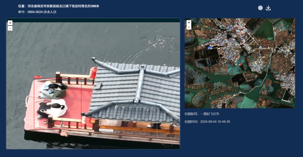 “数字淀乡”平台使用后,通过安装在船只上的北斗定位监控系统以及无人机定期对坑塘、码头、农家院进行巡视巡查,第一时间识别出不穿救生衣、乱扔垃圾等违规行为,一旦发现疑似溺水等情况,系统自动报警,方便工作人员第一时间到达现场查看处理,有效助力乡村游、防溺水、生态环保等工作。