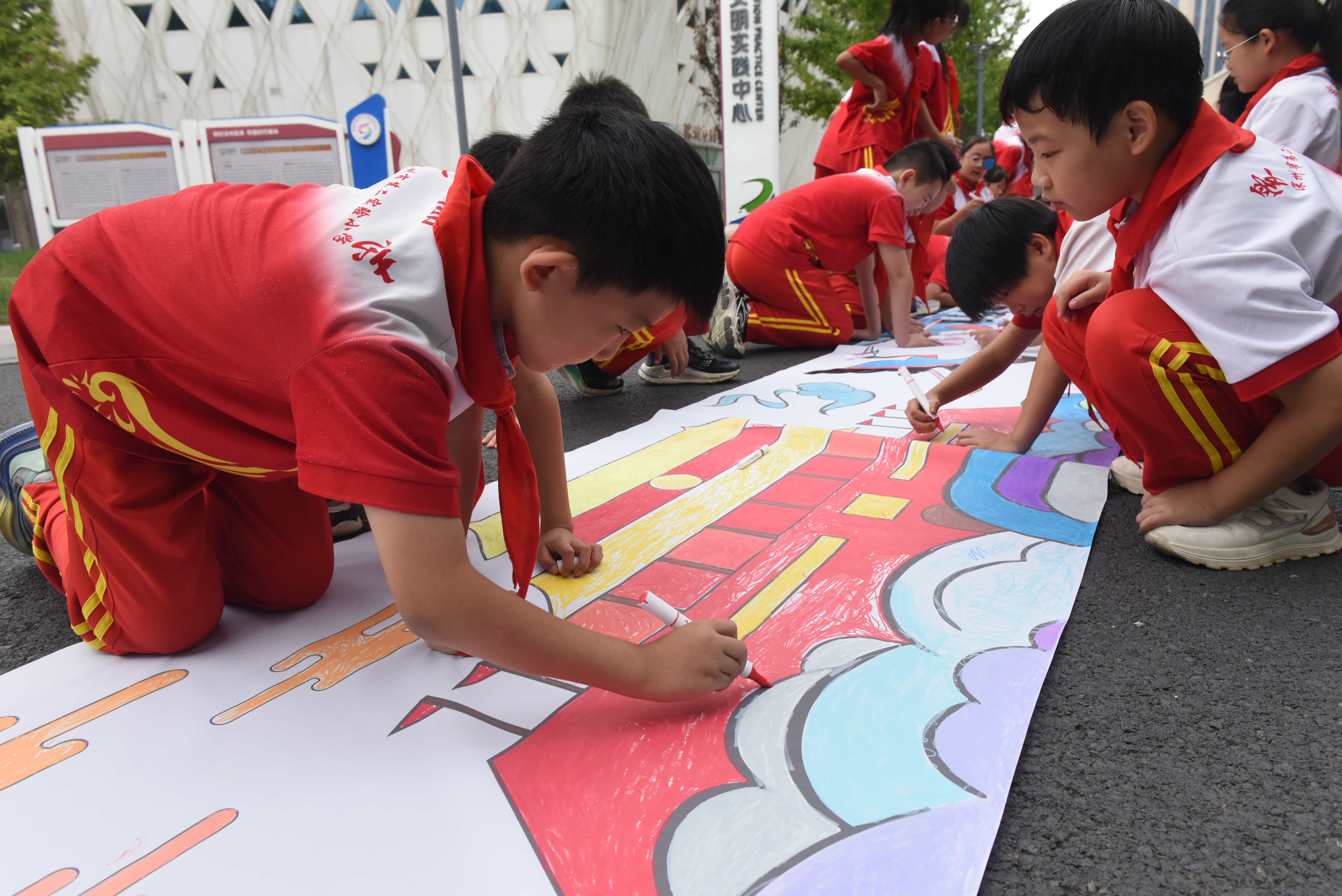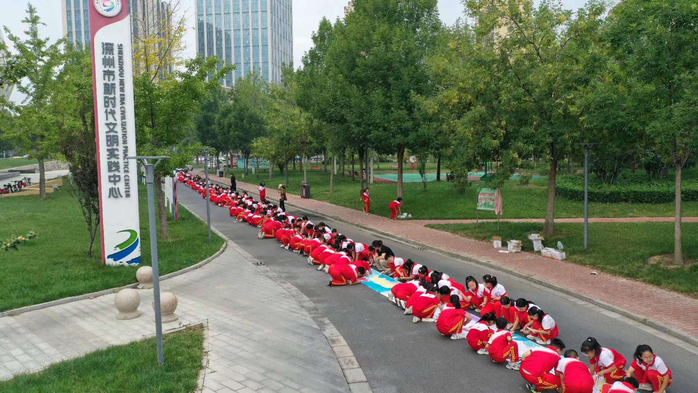 活动中,在志愿者和老师们的指导下,来自深州市第二实验小学的学生们手持画笔,或凝神构思,或挥毫泼墨,共同绘制出一幅“中秋”主题百米巨幅画卷,以特有方式表达对中秋团圆的美好祝愿,让中华优秀传统文化浸润童心。