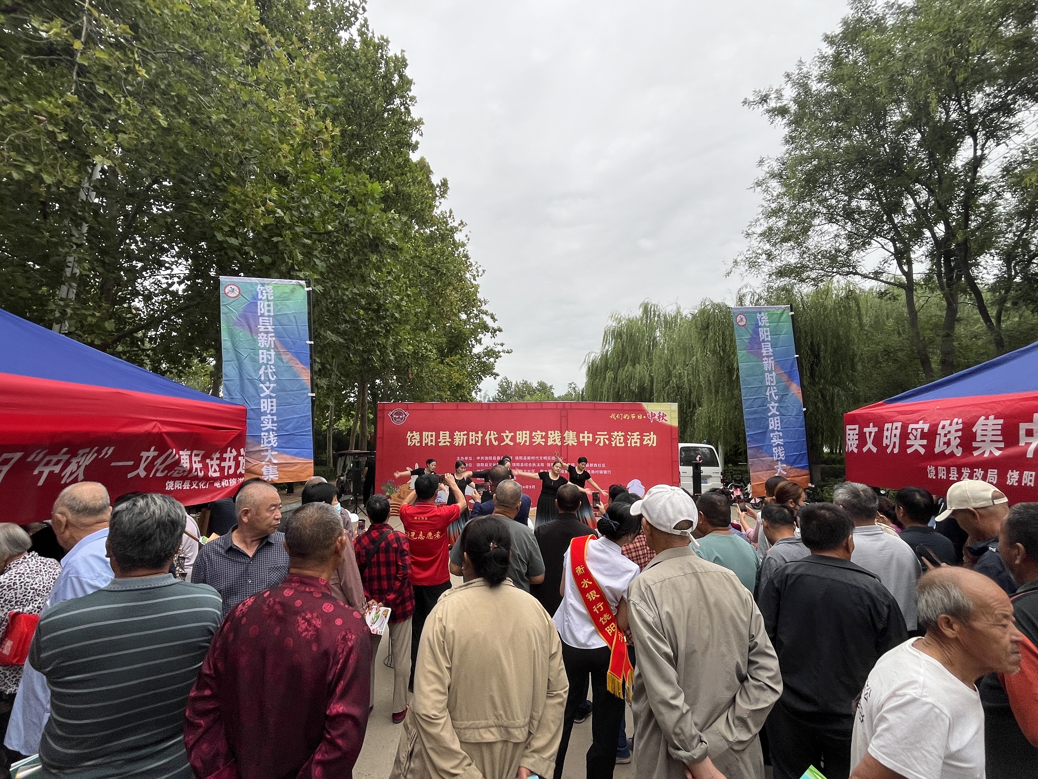 秋意渐浓,佳节将至。为弘扬和传承中国传统文化,丰富居民的文化生活,营造团结友爱、文明和谐的节日氛围,近日,饶阳县文明办结合“双争”工作,在县博陵公园组织开展了“我们的节日▪中秋”新时代文明实践集中示范活动。