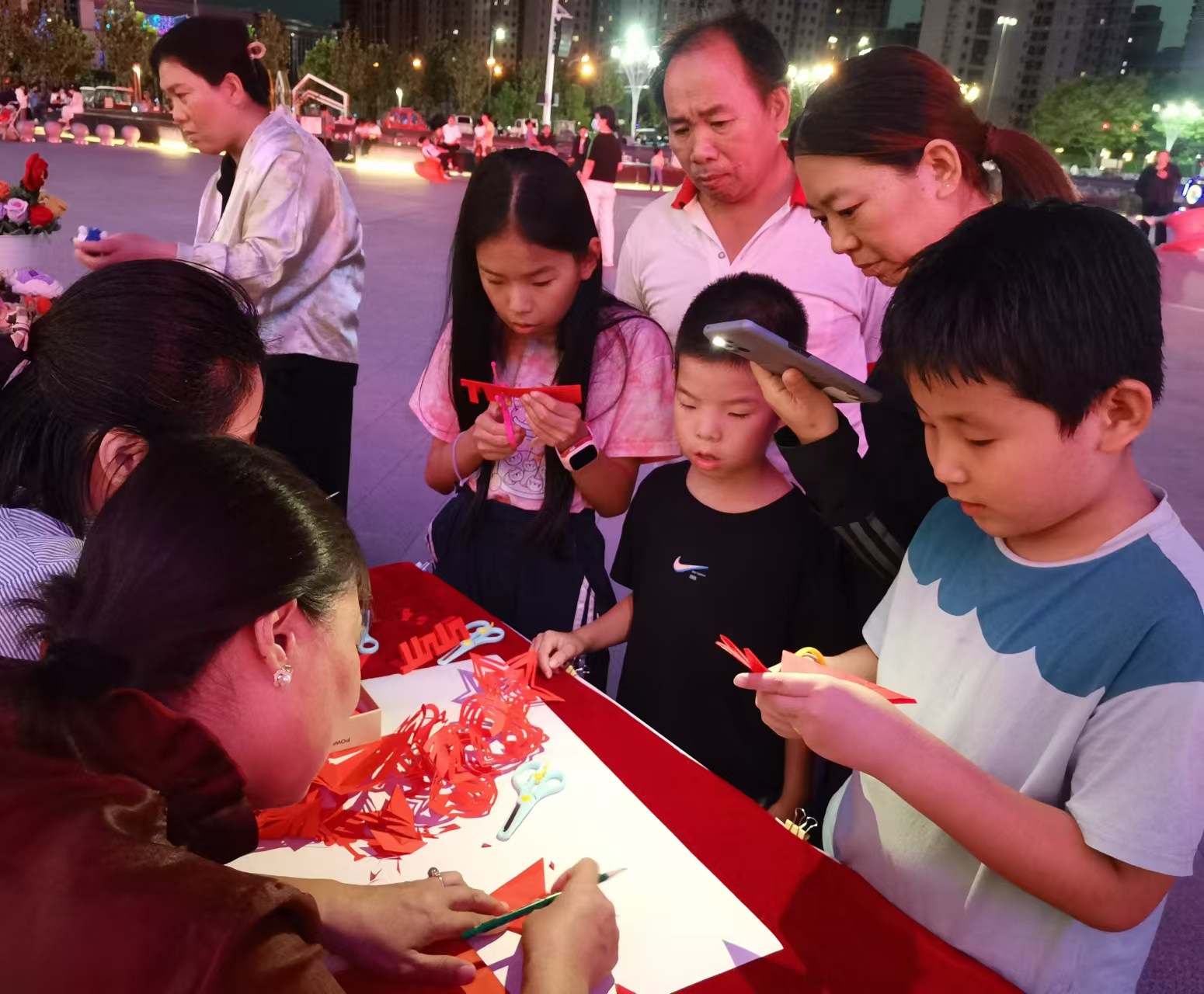 活动现场,十几项非遗项目亮相展位,传承人现场献艺,并与市民近距离互动。市民们有的兴致勃勃地尝试体验武强年画印刷过程,有的欣赏美丽灵动的宫廷金鱼,有的拍照网红项目“围炉煮茶”。糖画和剪纸等手工艺品,是小孩子们的最爱,纷纷驻足展位前仔细观看,几名孩子在非遗传承人的示范下,动手学了起来。家长王艳表示,孩子们在活动中更多了解和体验到了衡水传统文化,锻炼了动手能力,培养了创新力,这个中秋假期过得挺有意义。