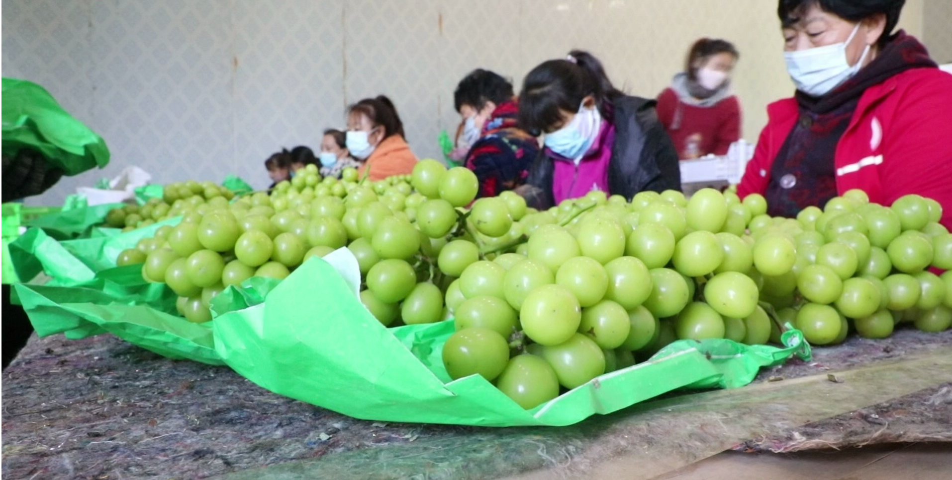 采摘、分拣、精选、打包……近日,在深州市辰时镇温家庄生态园的葡萄棚室里,工人们正紧张地忙碌着。这里种植的阳光玫瑰葡萄陆续进行采摘,棚室内一串串晶莹剔透的葡萄挂满藤架,空气中弥漫着香甜的气息,令人垂涎欲滴。