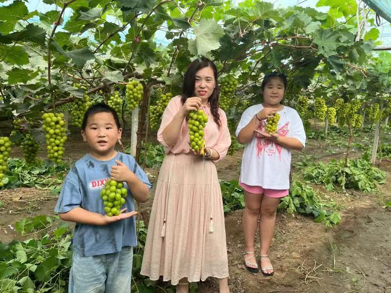阳光玫瑰葡萄不仅帮助农户富了“口袋”,也为人们休闲生活增添了几分“甜味”,每年都吸引很多游客前来采摘游玩。临近中秋,前来采摘游客纷至沓来,一时间棚室内内热闹非常,孩子们提着篮子体验采摘快乐,在葡萄园里欢快地奔跑着,不时发出阵阵笑声。“听说这边葡萄比较好,今天趁着假期,特意带着孩子来采摘体验,葡萄水分很足,又大又甜。”游客温丽娜说。
