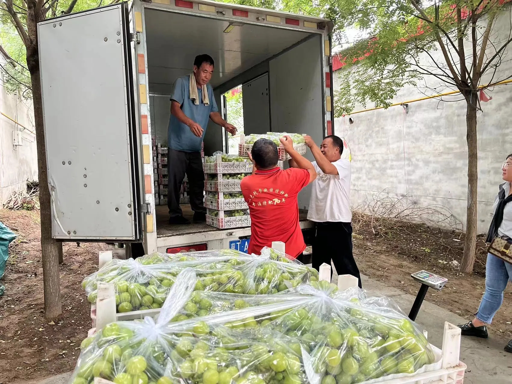 温家庄生态园占地约120亩,建有40个葡萄大棚,其中35个种植阳光玫瑰葡萄。生态园基础设施完备,采用标准化栽培管理技术和病虫害绿色防控措施,亩产量可达5000斤,他们的阳光玫瑰葡萄凭借高颜值、好品质吸引各地客商前来采购,订单供不应求。 “温家庄的葡萄品质好、口感佳,这次我拉5000斤送往济南。”棚室外正装车的饶阳客商王大哥笑着说。